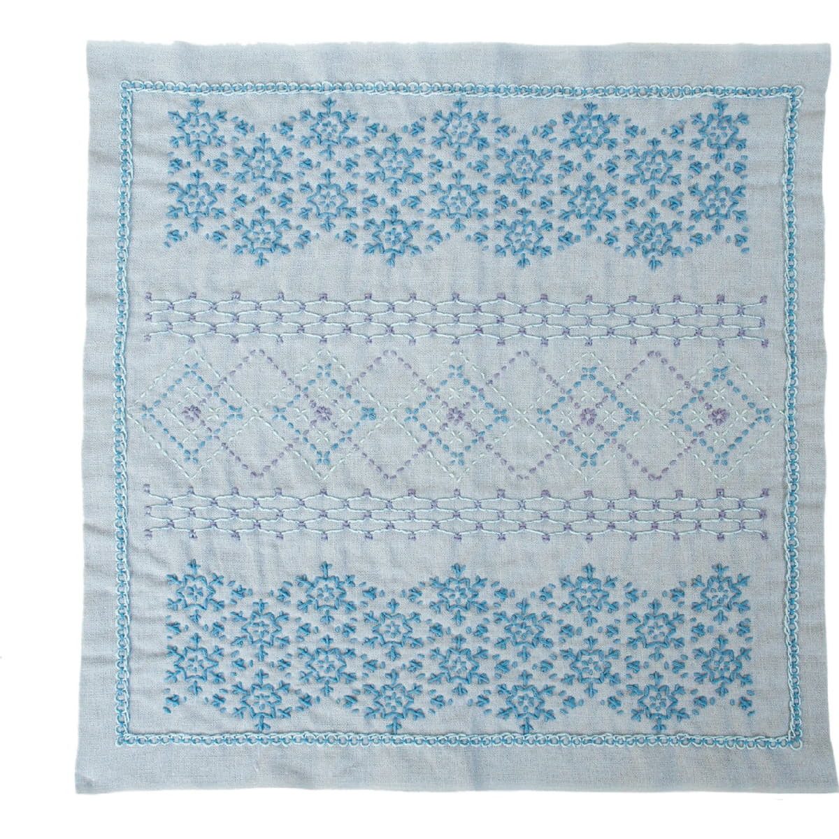 Hana Fukin ist ein quadratisches Tuch, welches traditionell mit Sashiko Motiven bestickt wird. Применитьgestellt kann man Hana Fukin als Kuchentuch, Kissenhülle, Abdeckung oder als Wanddekoration verwenden.