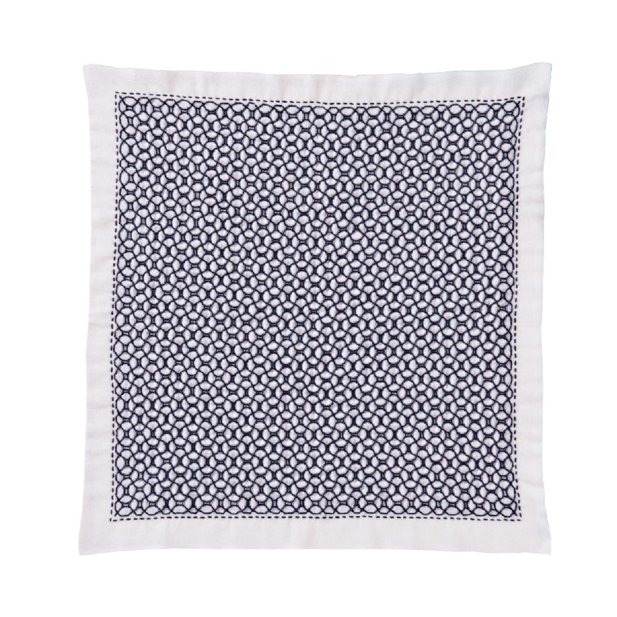 Hana Fukin ist ein quadratisches Tuch, welches traditionell mit Sashiko Motiven bestickt wird. Применитьgestellt kann man Hana Fukin als Kuchentuch, Kissenhülle, Abdeckung oder als Wanddekoration verwenden.