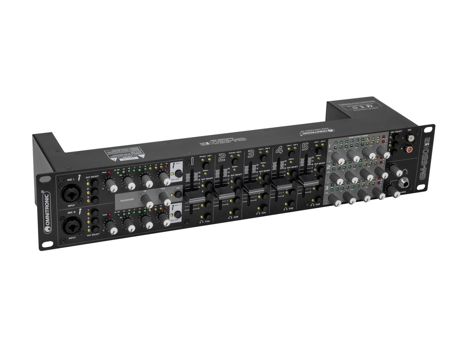 Kanäle: | Eingangskanal: 2 x Stereo mit Line-Line/Phono Schalter über Cinch, Kanalregelung über Fader, Regler 3-Band EQ, Routing Master-Bus-Schalter, Gainregler, Quellen-Umschalter, CUE-Schalter Eingangskanal: 3 x Stereo mit Line-Line Schalter über Cinch, Kanalregelung über Fader, Routing Master-Bus-Schalter, Gainregler, Quellen-Umschalter, CUE-Schalter Mikrofonkanal: 2 x Mono über Kombibuchse (XLR/KLINKE), Kanalregelung über Drehregler, ON AIR Schalter, Routing Master-Bus-Schalter, Talkover Schalter Master-Ausgang: 3 x Stereo über XLR oder Cinch, Kanalregelung über Drehregler, Regler 3-Band EQ Rec. Ausgang: 1 x Stereo über Cinch, Routing Master-Bus-Schalter Kopfhörer-Ausgang: 1 x Stereo über Klinke, Kanalregelung über Drehregler, Cue-Mix-Funktion |