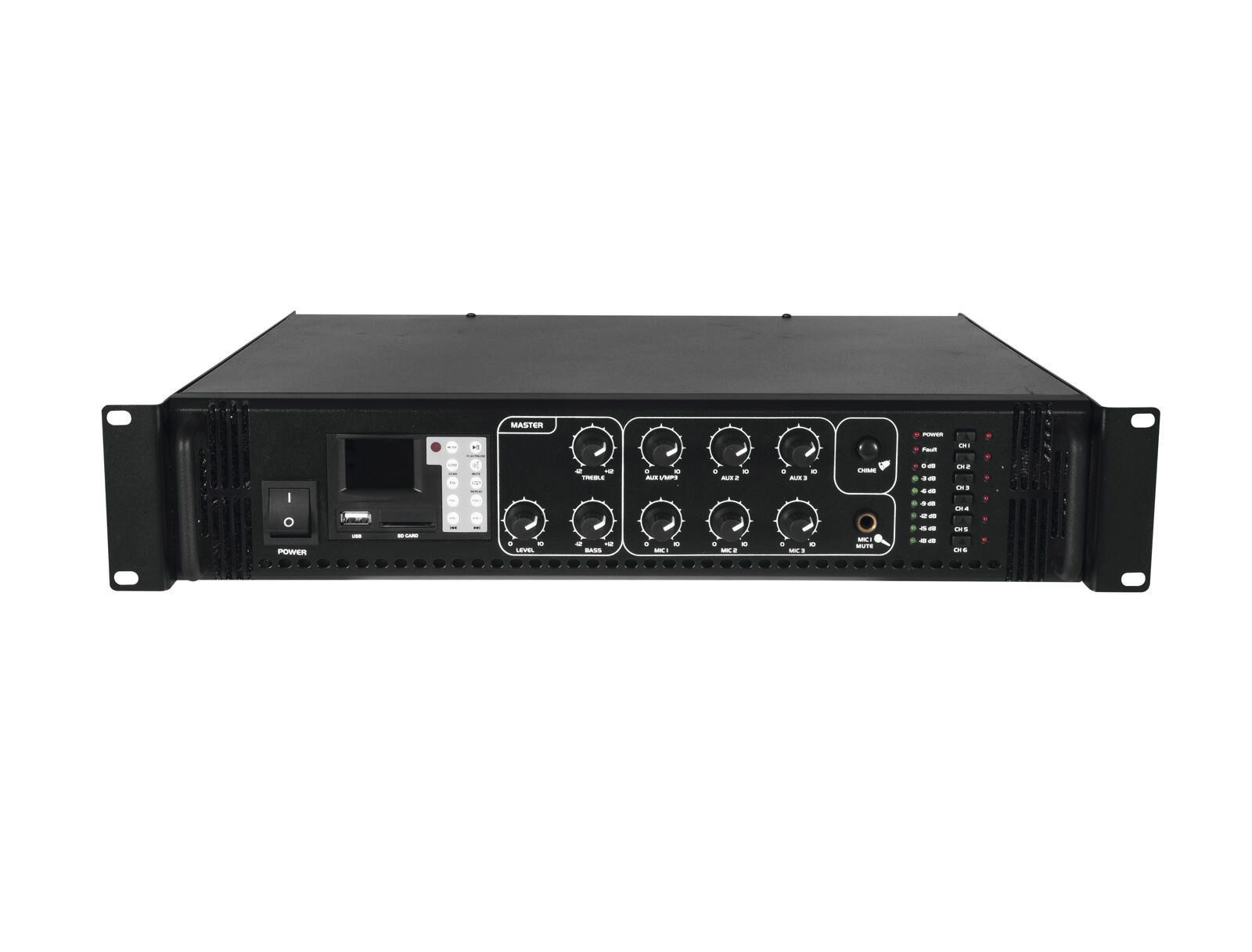 6-Zonen-ELA-Mischverstärker mit Audioplayer und IR-Fernbedienung, schaltbare Zonen, 350 W RMS