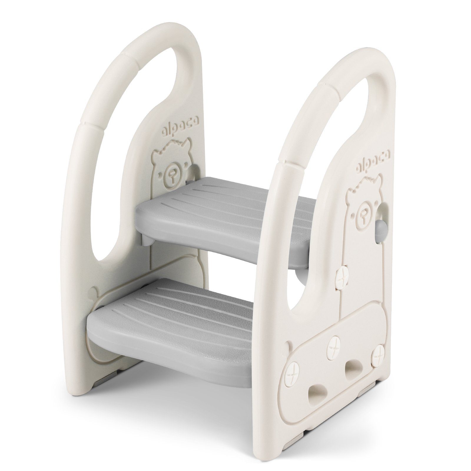 Leicht, aber robust Dieser Tritthocker Kinder kann ein Gewicht von 60KG tragen, wiegt aber nur 2,4 kg. Dass Kinder es leicht von einem Raum in einen anderen transportieren können