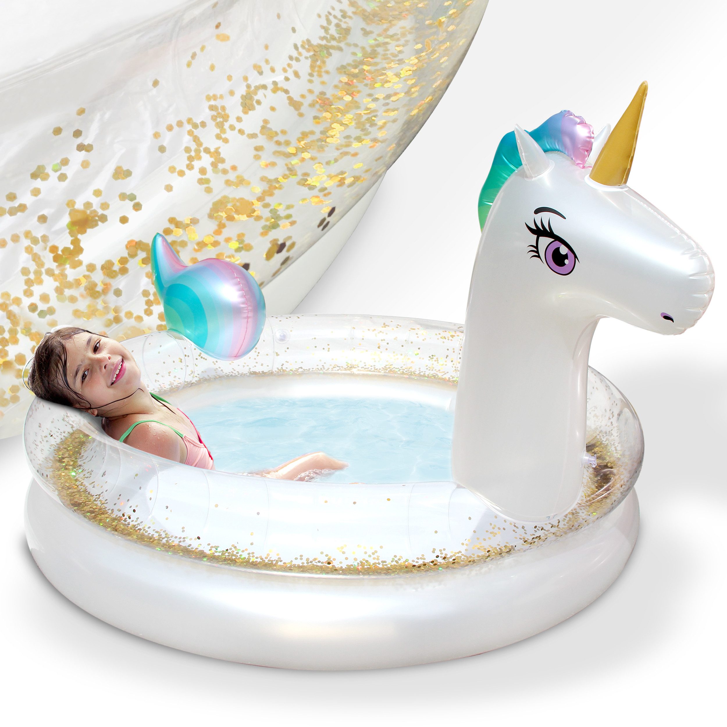 Der ONBEST Kinderpool im Einhorn-Design ist der perfekte Sommerbegleiter für Kinder ab 3 Jahren. Das bezaubernde Design mit goldenem Glitzer und XXL-Einhornkopf macht ihn zum Hingucker in jedem Garten. Mit hautfreundlichem Material, einfacher Handhabung und praktischen Funktionen bietet er sicheren Wasserspaß für die ganze Familie.