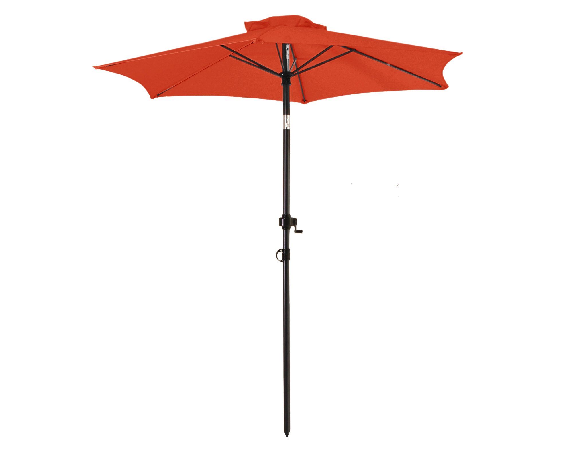 Die leichte Bedienung per Handkurbel ermöglicht ein problemloses Öffnen und Спрятать des Marktschirmes. Das dunkelgraue Gestell aus Stahl beinhaltet ein 38 mm dickes Standrohr, welches sechs Streben miteinander verbindet. Der Schattenspender überzeugt mit einem Schirm, welcher aus 100% Polyester besteht. Durch ein verchromtes Knick-Gelenk, welches kinderleicht durch einen Druckknopf zu bedienen ist, lässt sich der Marktschirm individuell einstellen und schützt somit auch vor schräg einfallenden Sonnenstrahlen. Dazu kommt ein UV-Schutz von 50. Der air-vent ist für das Entweichen von leichten Windstößen verantwortlich und sorgt für einen festen Stand. Es kann zusätzlich ein Kreuzständer erworben werden. Es ist dringend zu empfehlen den Ständer mittels der vorgefertigten Bohrungen zu verankern.