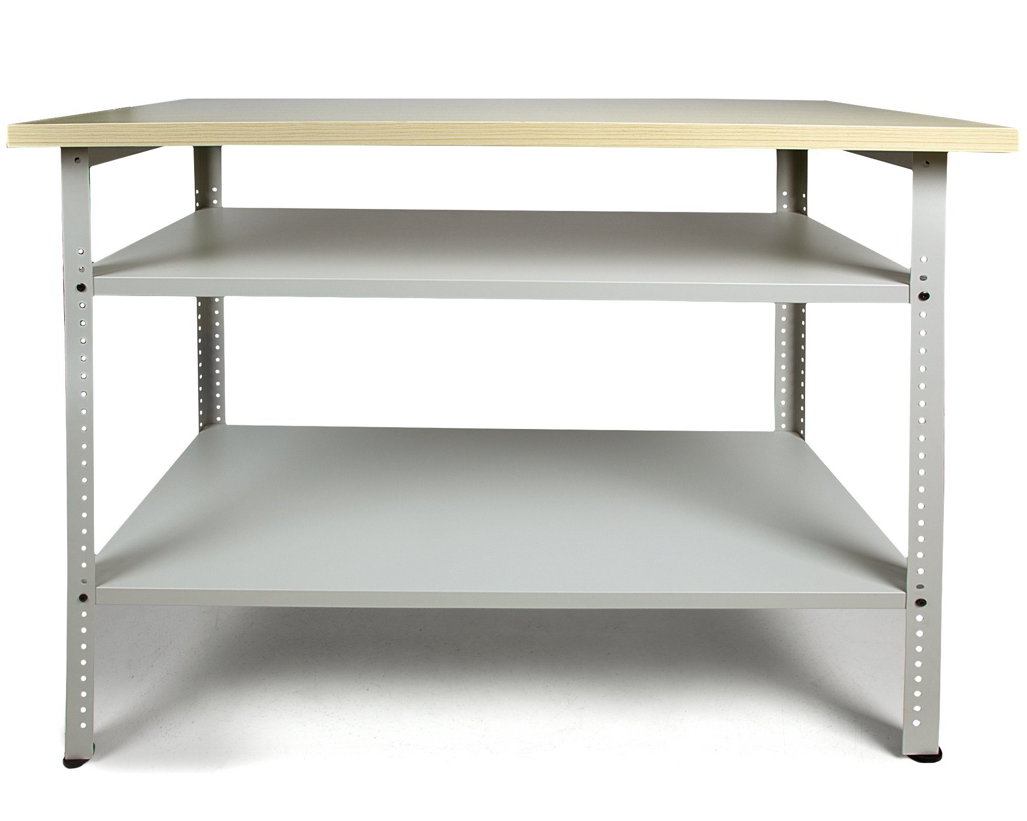 Die Werkbank besitzt Füße mit Höhenverstellung, damit etwaige Unebenheiten problemlos ausgeglichen werden können und die Werkbank einen sicheren Stand hat. Die beiden Zwischenböden verleihen der Werkbank nicht nur ihre Stabilität sondern bieten auch jede Menge Stauraum, der effektiv genutzt werden kann. Außerdem lassen sich die Fachböden individuell einsetzen und können in den vorgebohrten Löchern je nach Wunsch angebracht werden. Durch die offene Konstruktion kann man verstaute Utensilien sofort und in einem Handgriff entnehmen. Die Werkbank wird demontiert geliefert. Ein allround- Heimwerker hat keine Probleme beim Zusammenbau dieses Werktisches. Für den Aufbau sollte man etwa 15-20 Minuten einplanen und schrittweise nach der Anleitung vorgehen. Все nötigen Zubehörteile und eine Aufbauanleitung sind natürlich im Paket enthalten, auch Werkzeug wird im Paket mitgeliefert. Zu dieser Werkbank haben wir ebenfalls passende Werkzeugschränke und Lochwände im Programm. Die Maße der Werkbank sind 120 (B) x 95 (H) x 60 (T) cm und wiegt ca. 20 KG.