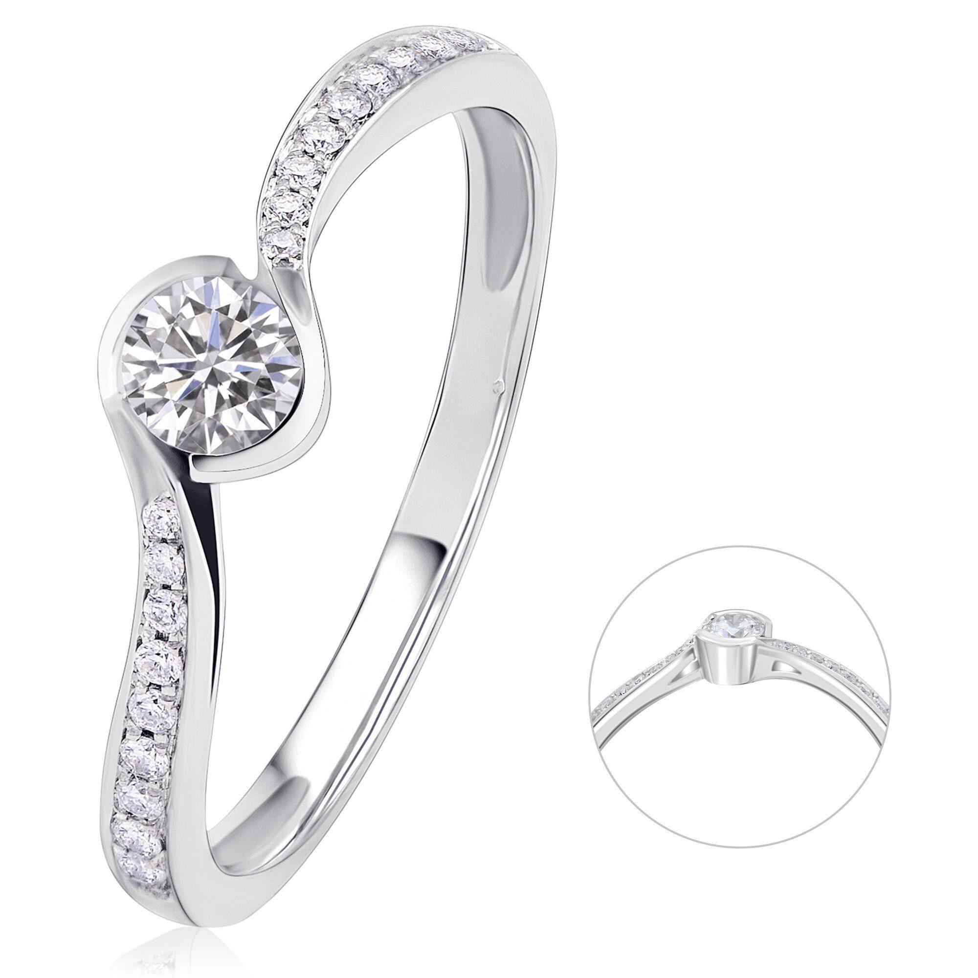 Zauberhafter Damenring aus 585er Weißgold (14 Karat), der mit grazil eingesetzten Brillanten sowie einem etwas größeren Brillanten ein besonderes Lebensgefühl versprüht. Bringt als Vorsteck-, Freundschafts- oder Verlobungsring getragen die Hand zum Funkeln und Gesichter zum Strahlen.
