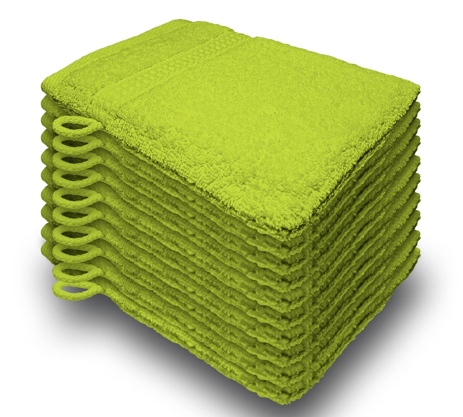 Das Flächengewicht beläuft sich auf ca. 500 g/m² und ist somit ein sehr saugfähiger Waschhandschuh