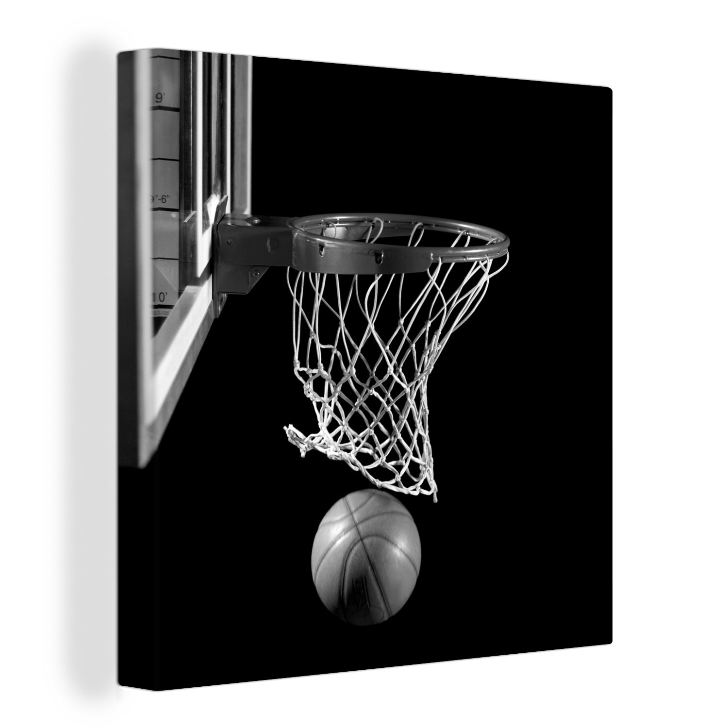 Farbe | Ein Basketball am Korb auf einem schwarzen Hintergrund - Schwarz und Weiß |