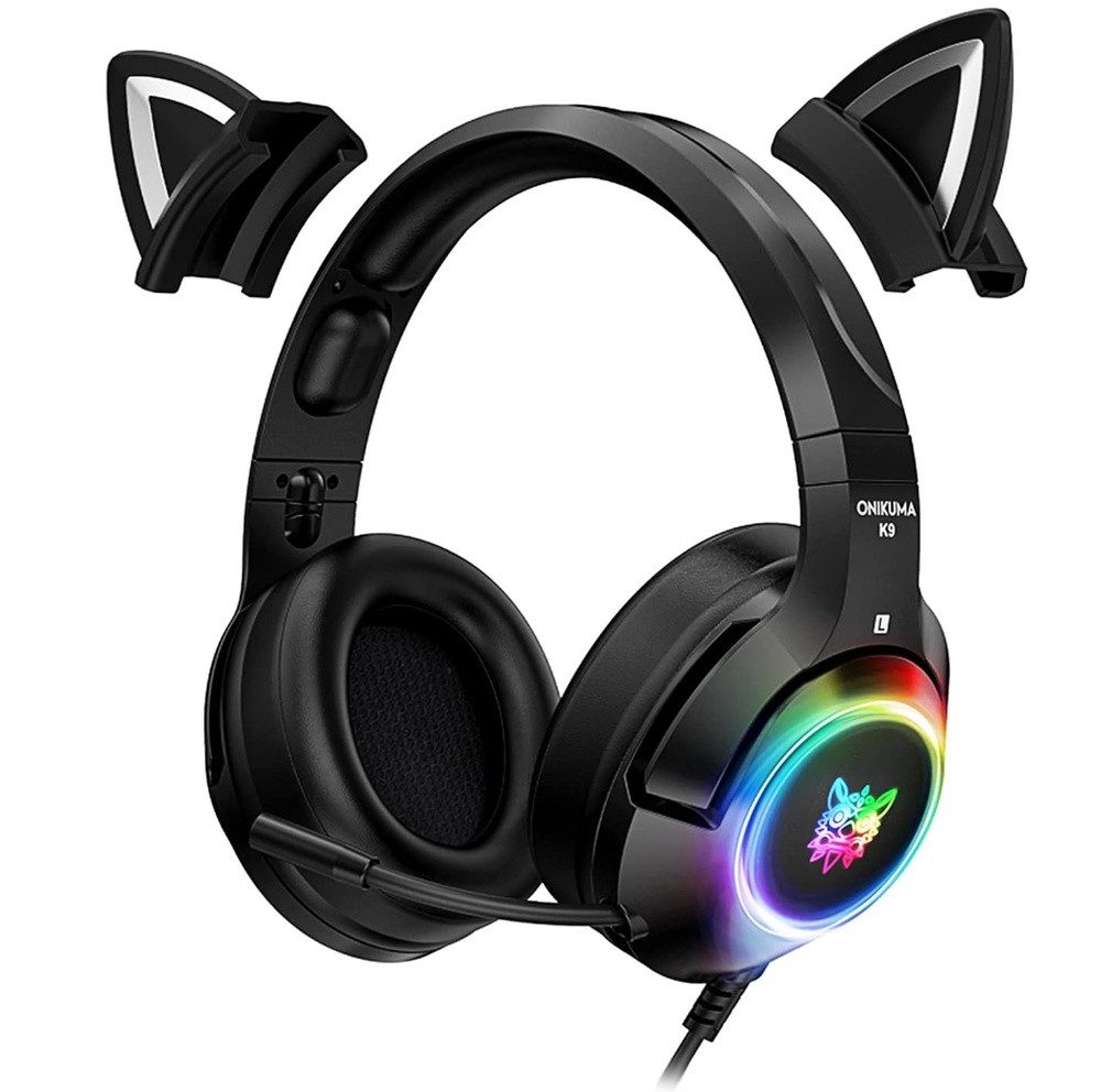 ONIKUMA K9 RGB 3,5mm Schwarz mit Katzenohren GAMING-HEADSET wireless Kopfhörer