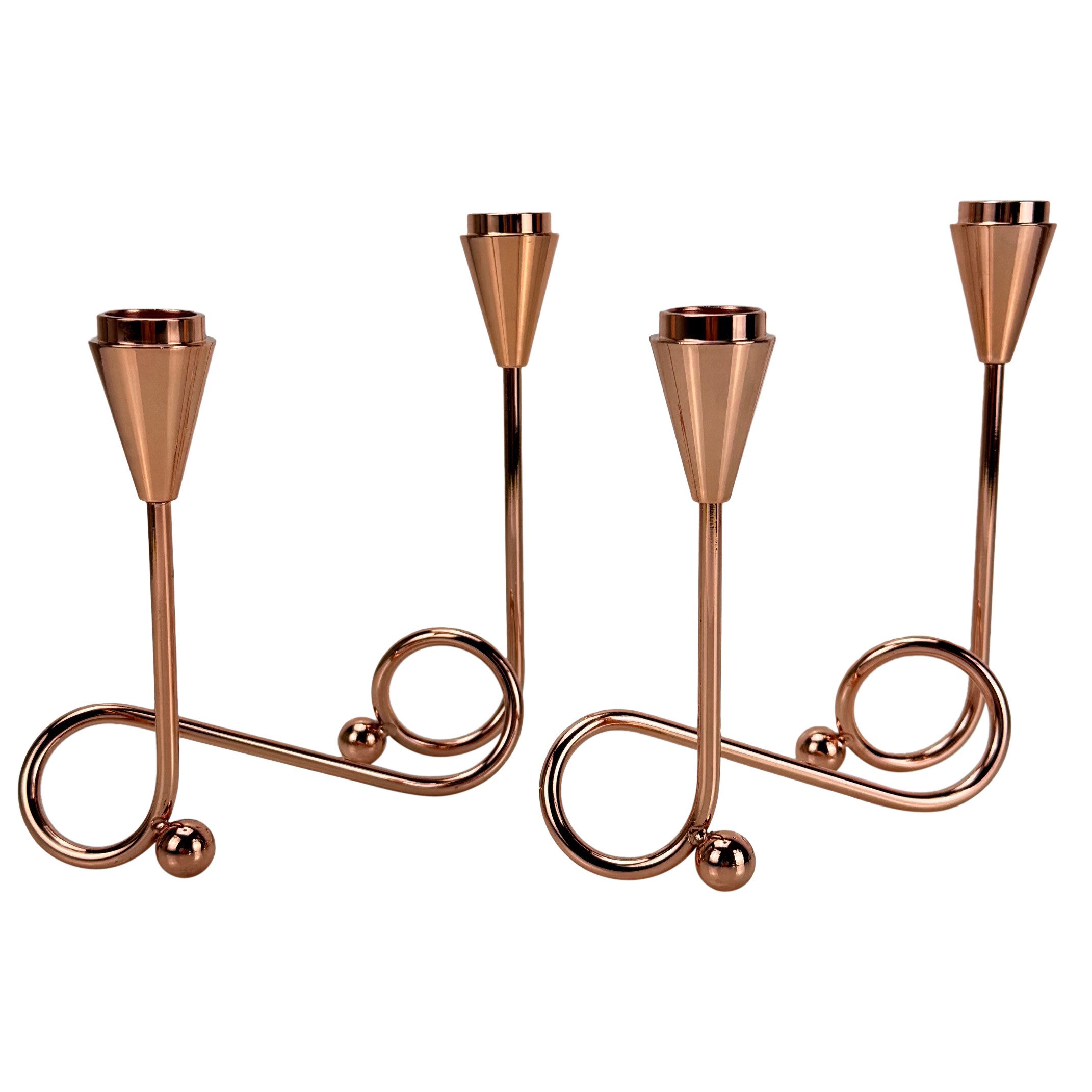 Online-Fuchs Kerzenhalter für je 2 Stabkerzen - moderner geschwungener Kerzenständer aus Metall (Rosé oder Silber, insgesamt für 4 Stabkerzen, auch als Adventskranz nutzbar), moderne und zeitlose Tischdekoration