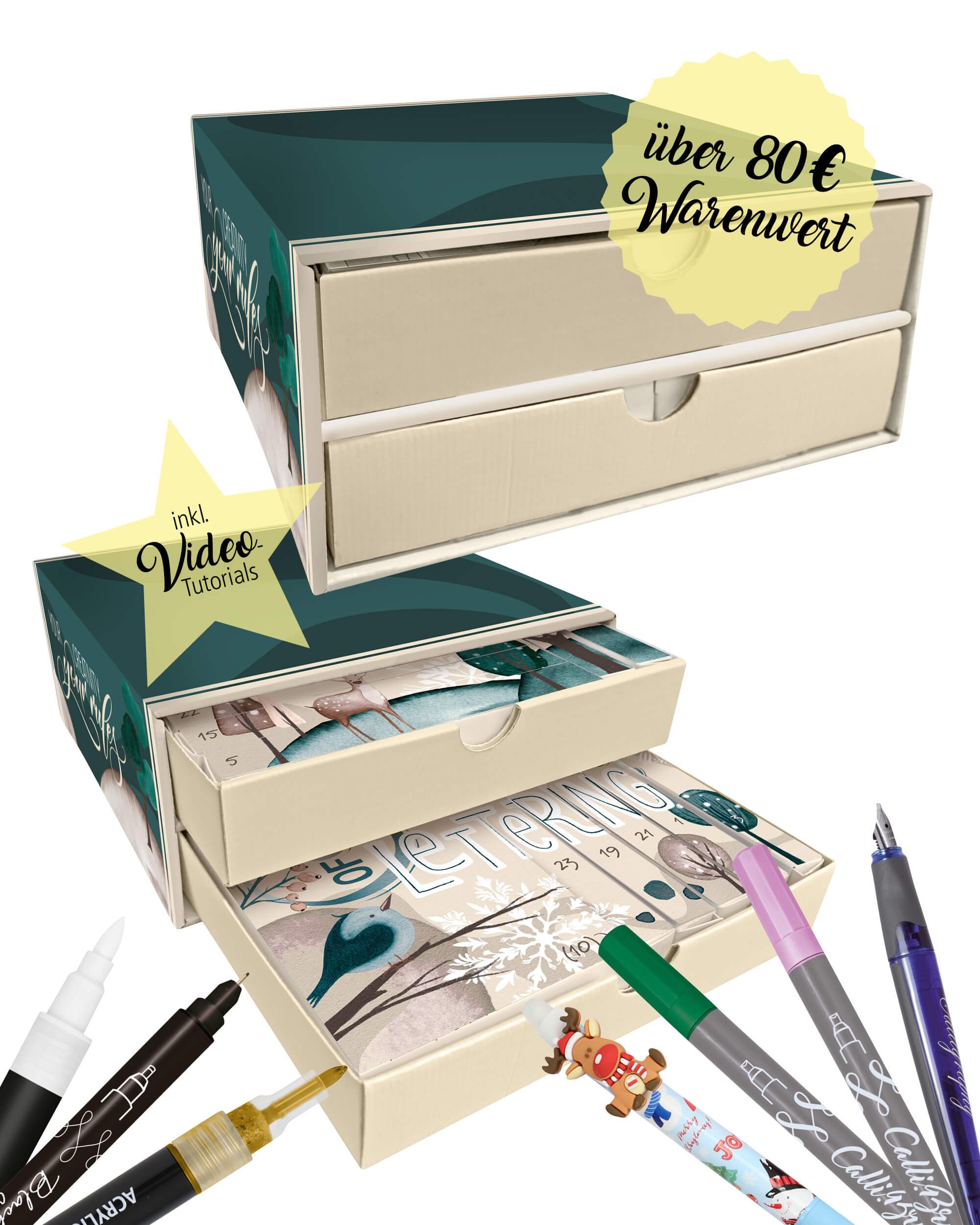 Magie-Fans aufgepasst: Der außergewöhnliche Adventskalender sorgt für Zauberschulen-Feeling. Mit allerhand magischen Stiften wie radierbaren Gelschreibern, Calli.Brush Magic und Acrylstiften ist alles enthalten, was das kreative Herz begehrt! Die perfekte Grundausstattung zum Kalligraphieren, Schönschreiben & Bullet-Journaling.