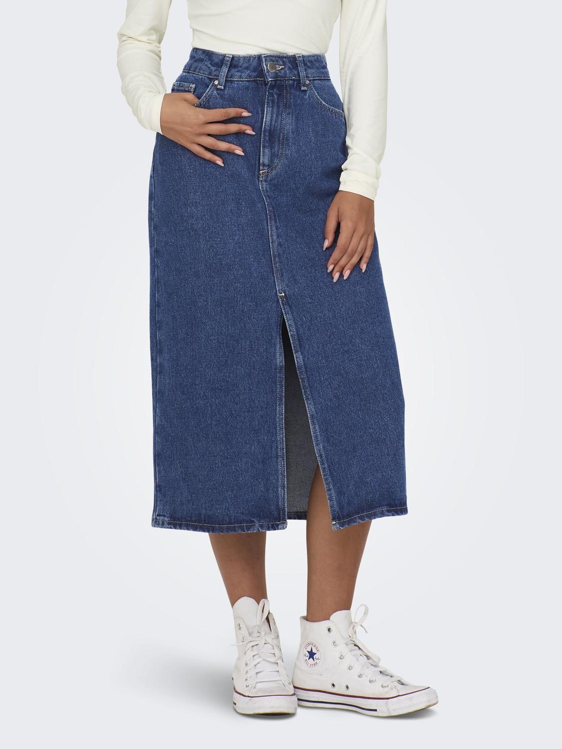 Der wadenlange Jeansrock von ONLY passt zu einem stilvollen Auftritt.
