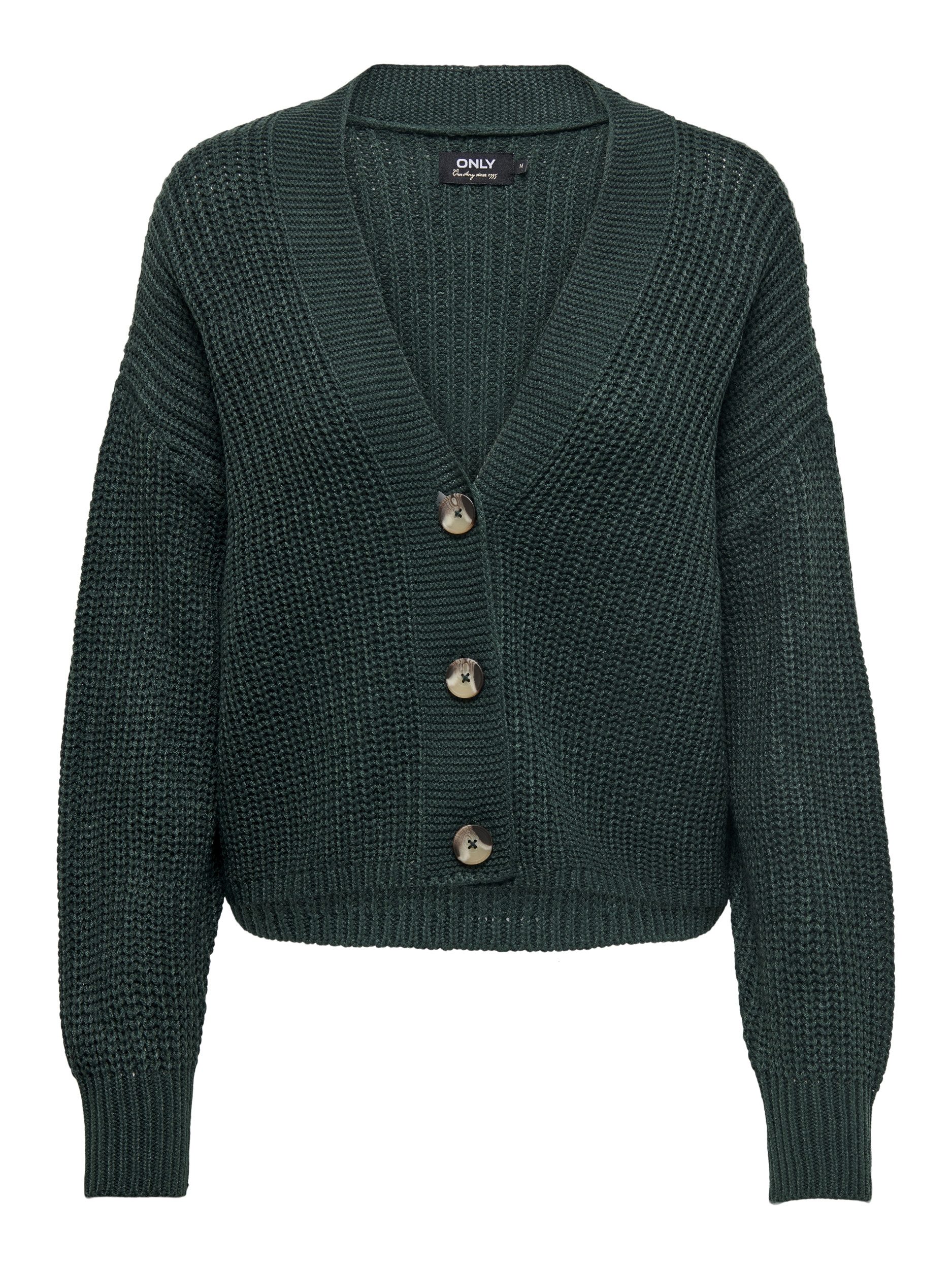 Mit der Strickjacke von ONLY bestellst du dein zukünftiges Lieblingsteil. Die langen Ärmel enden in einem Rippbündchen und schmiegen sich daher elastisch an deinen Körper an. Die Strickjacke ist hüftlang und gerade geschnitten, so fühlst du dich rundum wohl in deinem Outfit. Die Strickjacke hat einen V-Ausschnitt, der deine Lieblingskette in Szene setzt.