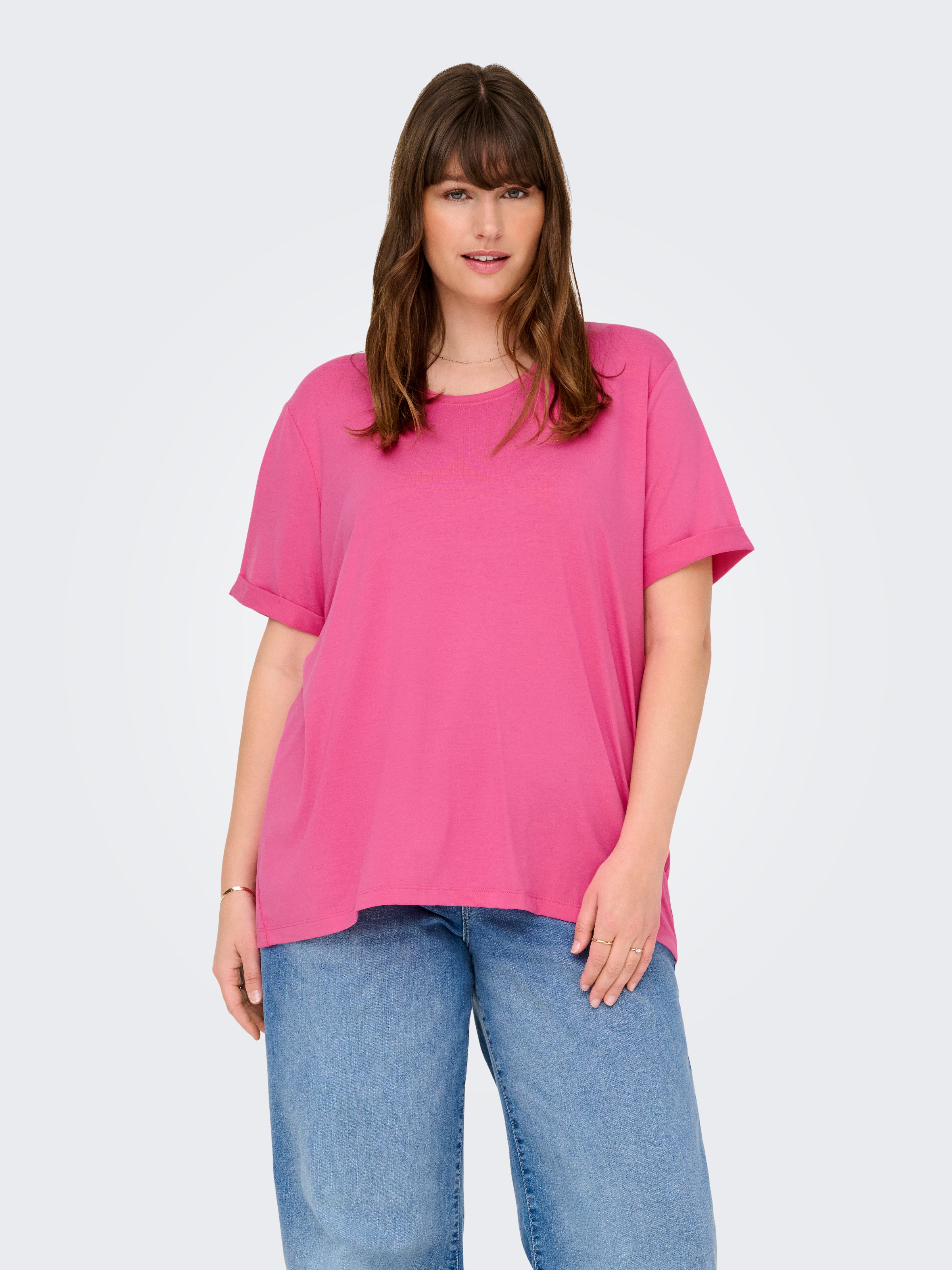 In Sachen Styling machst du mit diesem Shirt »CARMOSTER S/S FOLD UP TOP JRS NOOS« von ONLY CARMAKOMA nichts verkehrt!