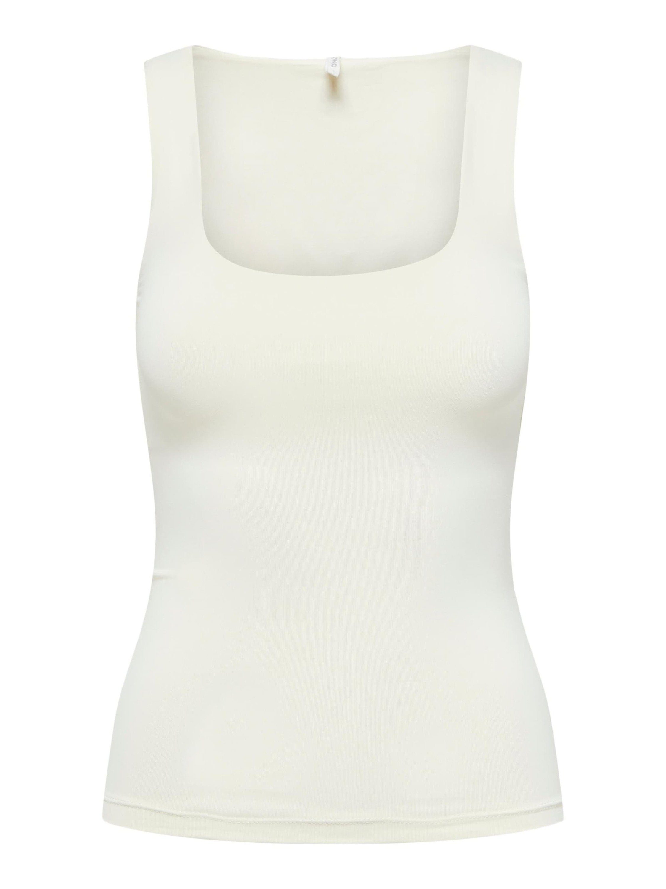 Schau dir das Tanktop von ONLY mal genauer an. Dieses Top hat einen eckigen Ausschnitt und ist normal sowie figurbetont geschnitten, sodass es deine Rundungen betont.