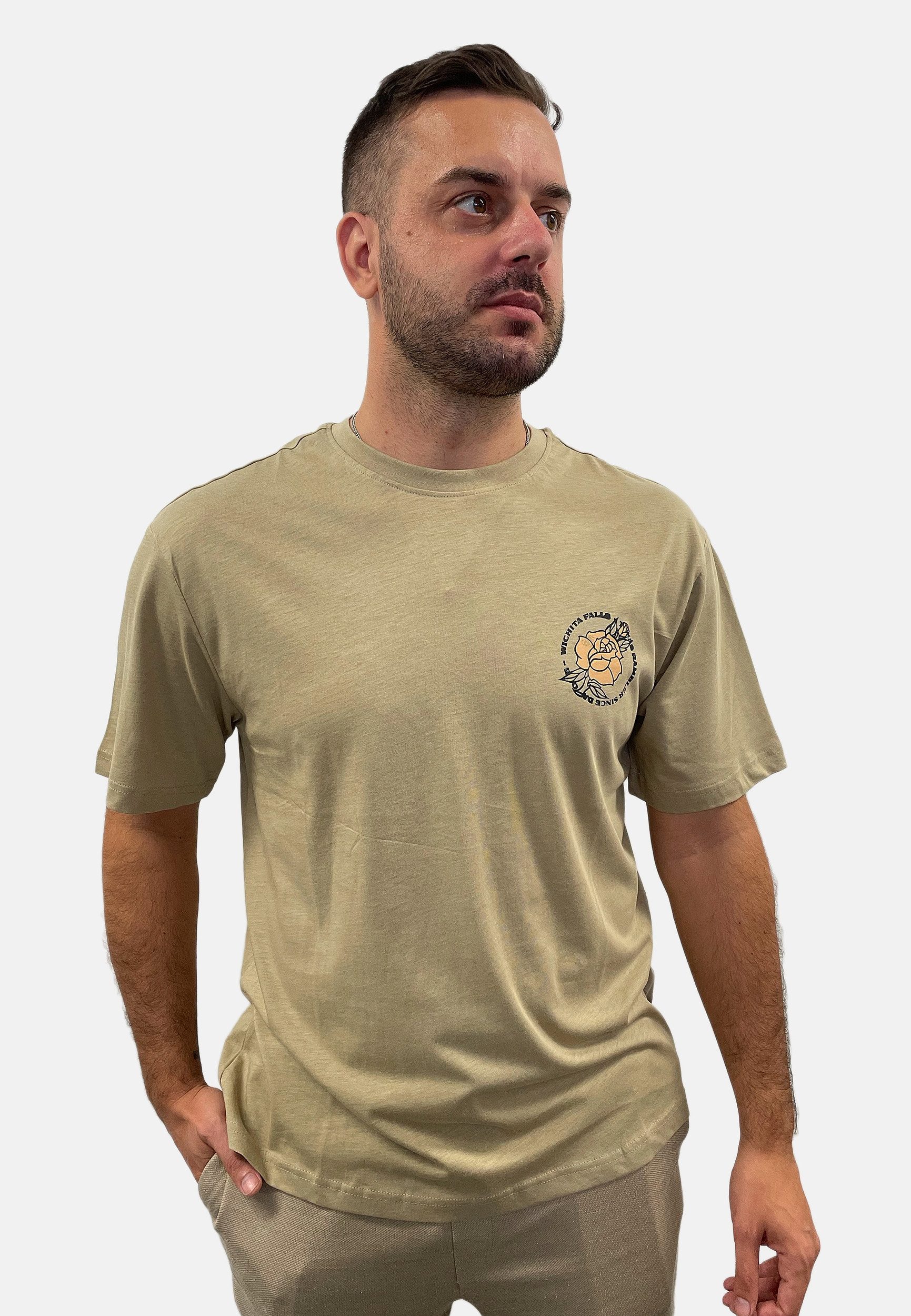 Der Rundhals und die kurzen Ärmel sorgen für ein klassisches und vielseitiges Design, das sich ideal für den Alltag eignet.