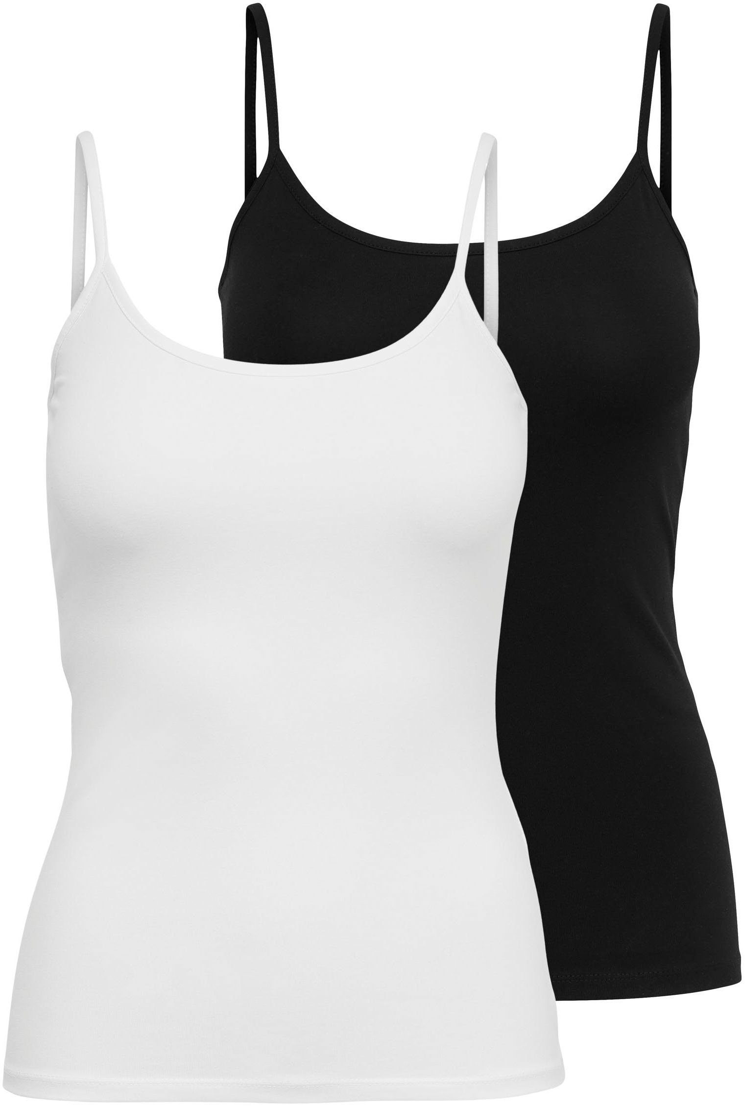 Mit dem Spaghettitop von ONLY stellst du im Handumdrehen ein neues Outfit zusammen. Dieses Top hat einen tiefen Rundhalsausschnitt und ist hüftlang sowie sehr figurbetont geschnitten, sodass es deine Figur auf schöne Weise betont.