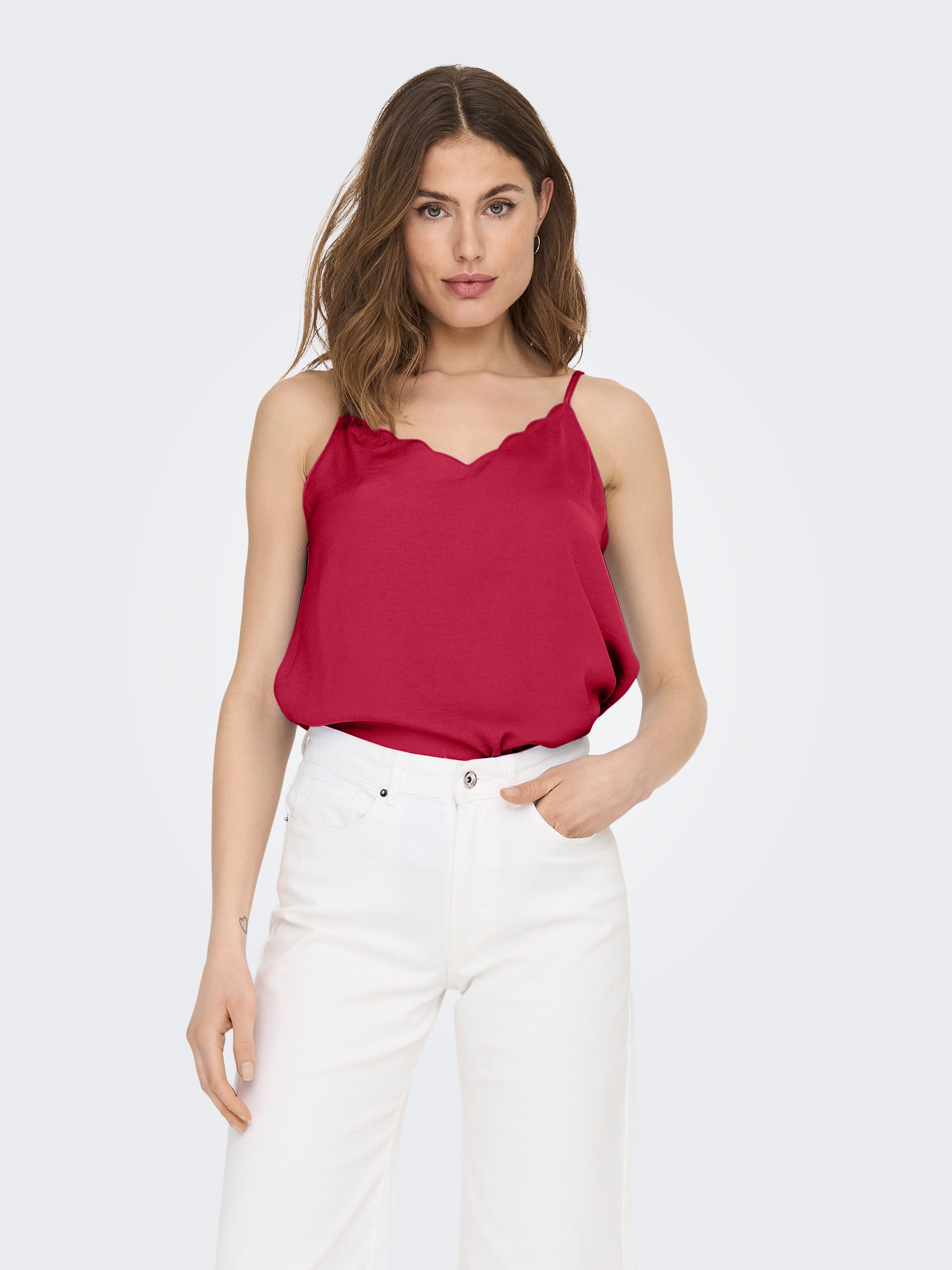 Mit dem Spaghettitop von ONLY lassen sich einfach neue Styles zusammenstellen. Dieses Top hat einen V-Ausschnitt und ist normal sowie basic geschnitten, sodass dein Oberkörper dezent in Szene gesetzt wird. Du kannst den Spaghettiträger für einen besseren Sitz individuell verstellen.