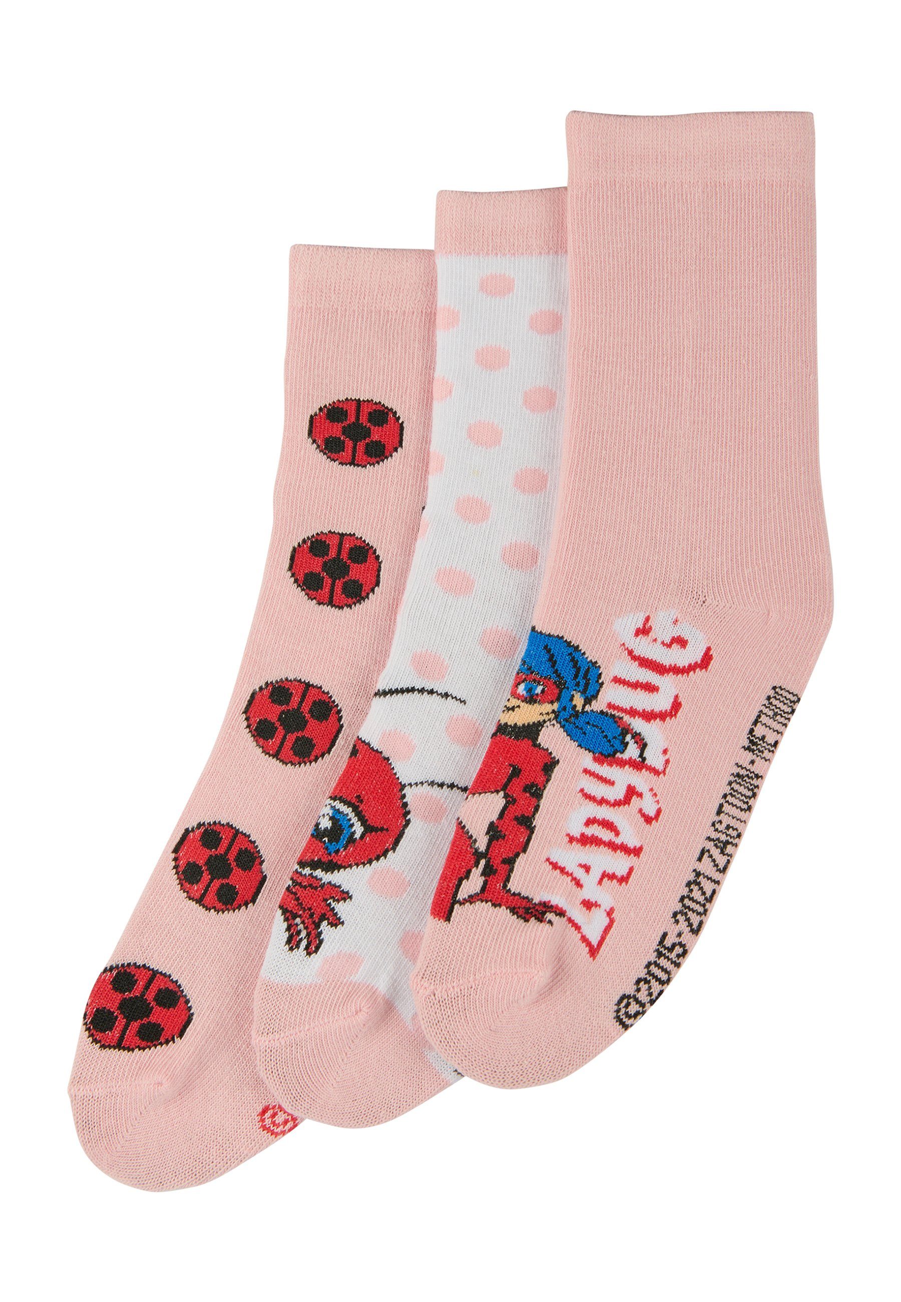 Tolles Miraculous- Lady Bug Mädchen Socken Set bestehend aus 3 Paar. Durch den Optimalen Mix der Materialien kommen die Füße Ihrer Kinder nicht so schnell ins Schwitzen.