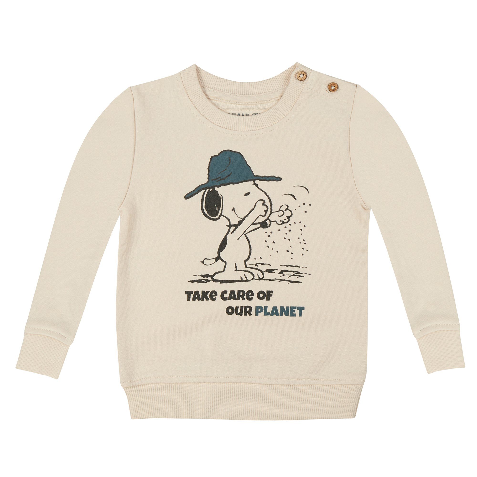 Dieses trendige Snoopy Kinder Sweathirt mit Statement Print lässt die Herzen der umweltbewussten Peanuts Fans höherschlagen. Das Sweaty ist bequem geschnitten. Ein tolles Detail sind die seitlich am Kragen eingesetzten Knöpfe aus Kokosnuss, die ein leichteres anziehen ermöglichen. Die eingesetzte, softe Bio-Baumwolle sorgt für einen hohen Tragekomfort. Dieses Sweatshirt ist ein nachhaltiges Produkt aus unserer Mini&Me Kollektion und auch für Moms im gleichen Style erhältlich.