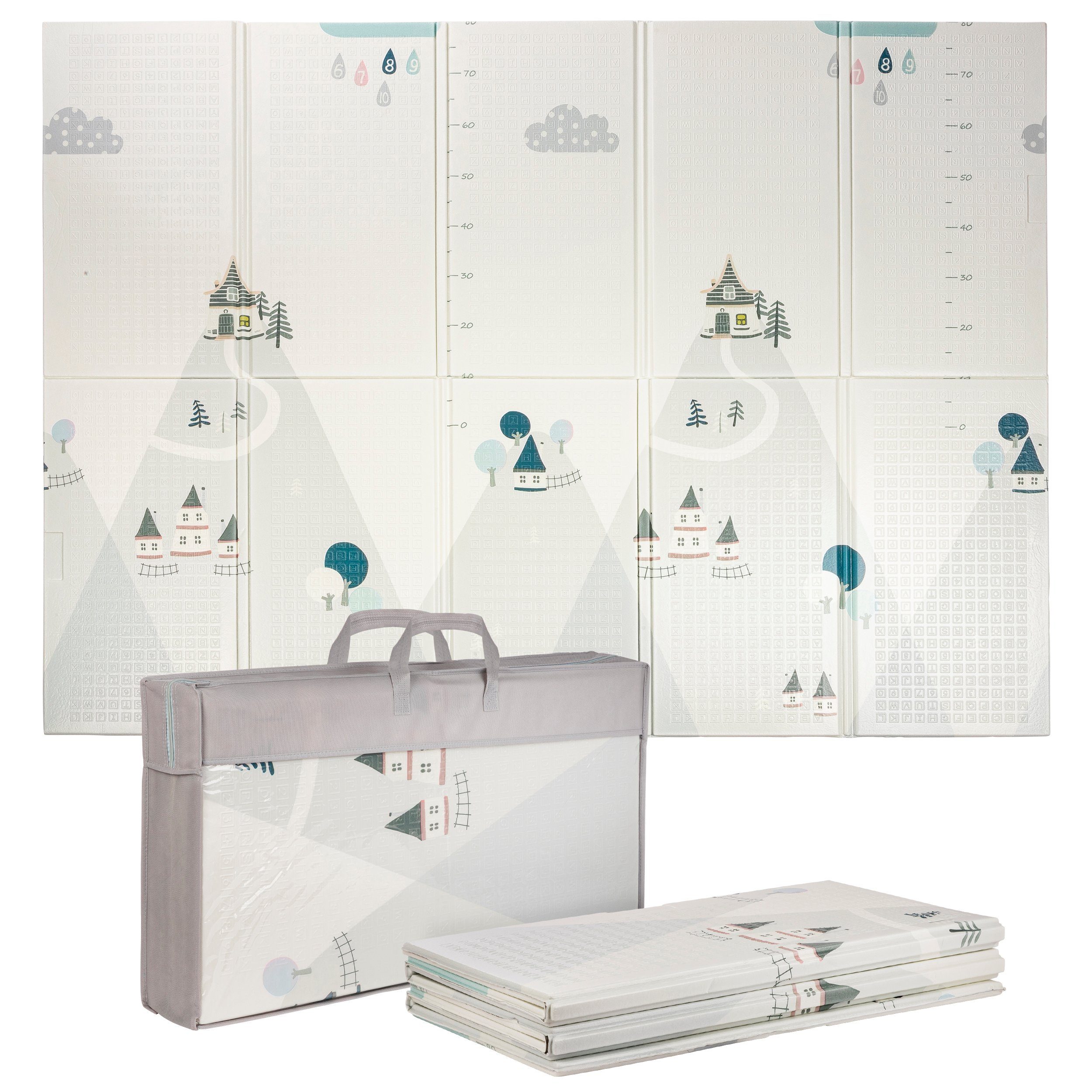 Die Matte ist schön groß und kann gleichzeitig relativ platzsparend zusammengeklappt und vor allem dank der Tasche gut transportiert werden, wenn man mit Kind auf Reisen ist.