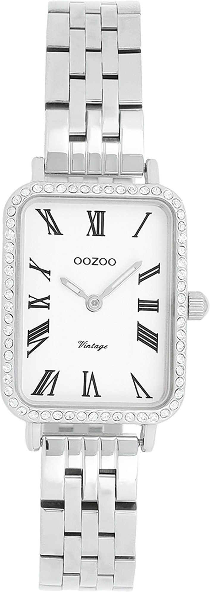 Die Fashion Uhr der Marke Oozoo hat ein schönes Armband aus Metall in silber mit Schiebeverschluss. Eine Uhr aus der Oozoo Vintage Series Kollektion für Damen in der Gehäusefarbe silber mit Quarzwerk. Die Analoguhr mit Mineralglas hat ein Zifferblatt in der Farbe weiß. Die Form der Uhr ist rechteckig und das Gehäuse ist extra groß ca. 24x28mm.