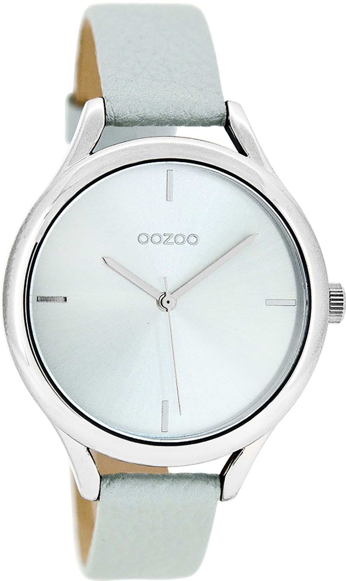 Die Casual Uhr der Marke Oozoo hat ein schönes Armband aus Leder in hellblau mit Dornschließe. Eine Uhr aus der Oozoo Timepieces Kollektion für Damen in der Gehäusefarbe silber mit Armbanduhr. Die Analoguhr mit Mineralglas hat ein Zifferblatt in der Farbe hellblau. Die Form der Uhr ist rund und das Gehäuse ist mittel ca. 38mm.