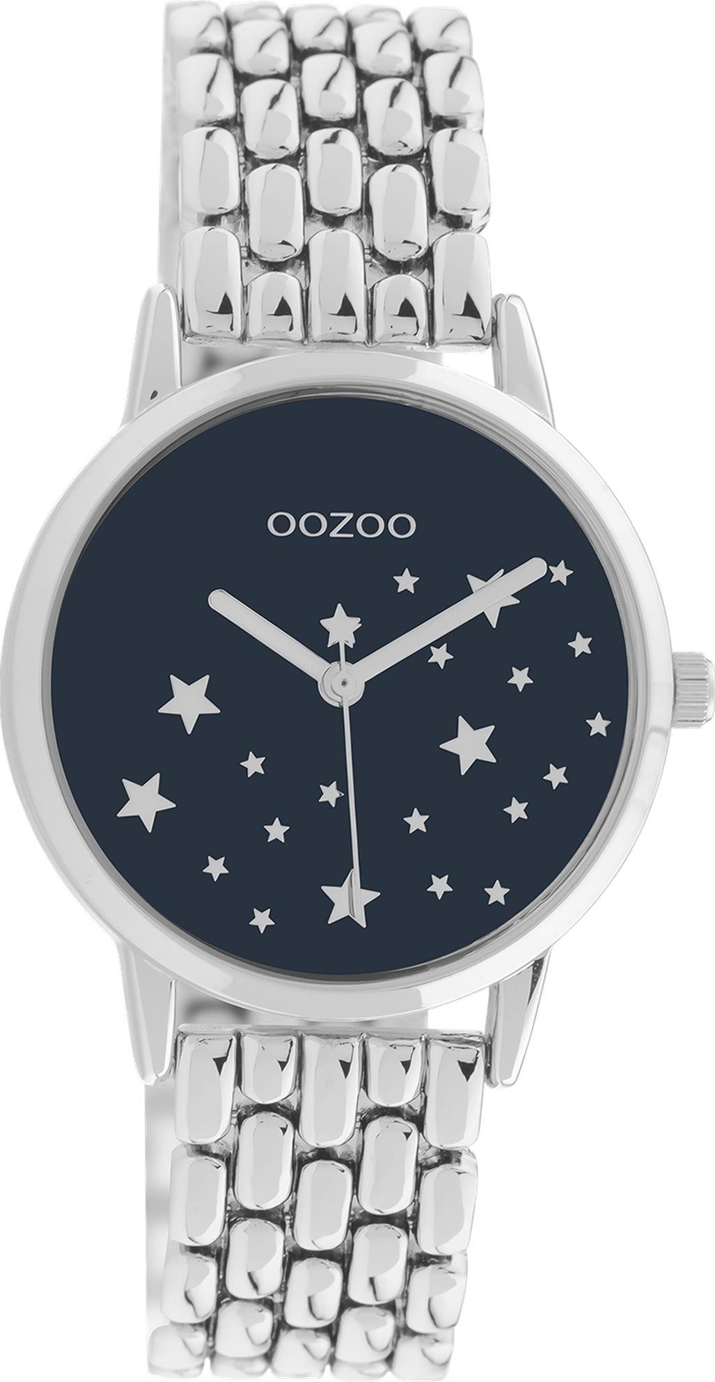 Die Elegant Uhr der Marke Oozoo hat ein schönes Armband aus Edelstahl in silber mit Schiebeverschluss. Eine Uhr aus der Oozoo Timepieces Kollektion für Damen in der Gehäusefarbe silber mit Quarzwerk. Die Analoguhr mit Mineralglas hat ein Zifferblatt in der Farbe blau. Die Form der Uhr ist rund und das Gehäuse ist mittel ca. 34mm.