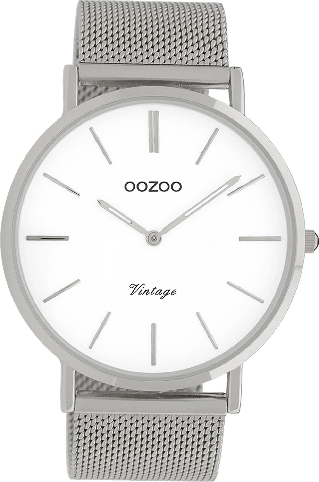Die Fashion Uhr der Marke Oozoo hat ein schönes Armband aus Edelstahl in silber mit Dornschließe. Eine Uhr aus der Oozoo Vintage Series Kollektion für Herren in der Gehäusefarbe silber mit Quarzwerk. Die Analoguhr mit Mineralglas hat ein Zifferblatt in der Farbe weiß. Die Form der Uhr ist rund und das Gehäuse ist groß ca. 44mm.