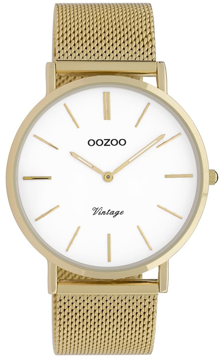 Die Fashion Uhr der Marke Oozoo hat ein schönes Armband aus Edelstahl in gold mit Klappverschluss. Eine Uhr aus der Oozoo Vintage Series Kollektion für Herren in der Gehäusefarbe gold mit Quarzwerk. Die Analoguhr mit Mineralglas hat ein Zifferblatt in der Farbe gold. Die Form der Uhr ist rund und das Gehäuse ist groß ca. 40mm.