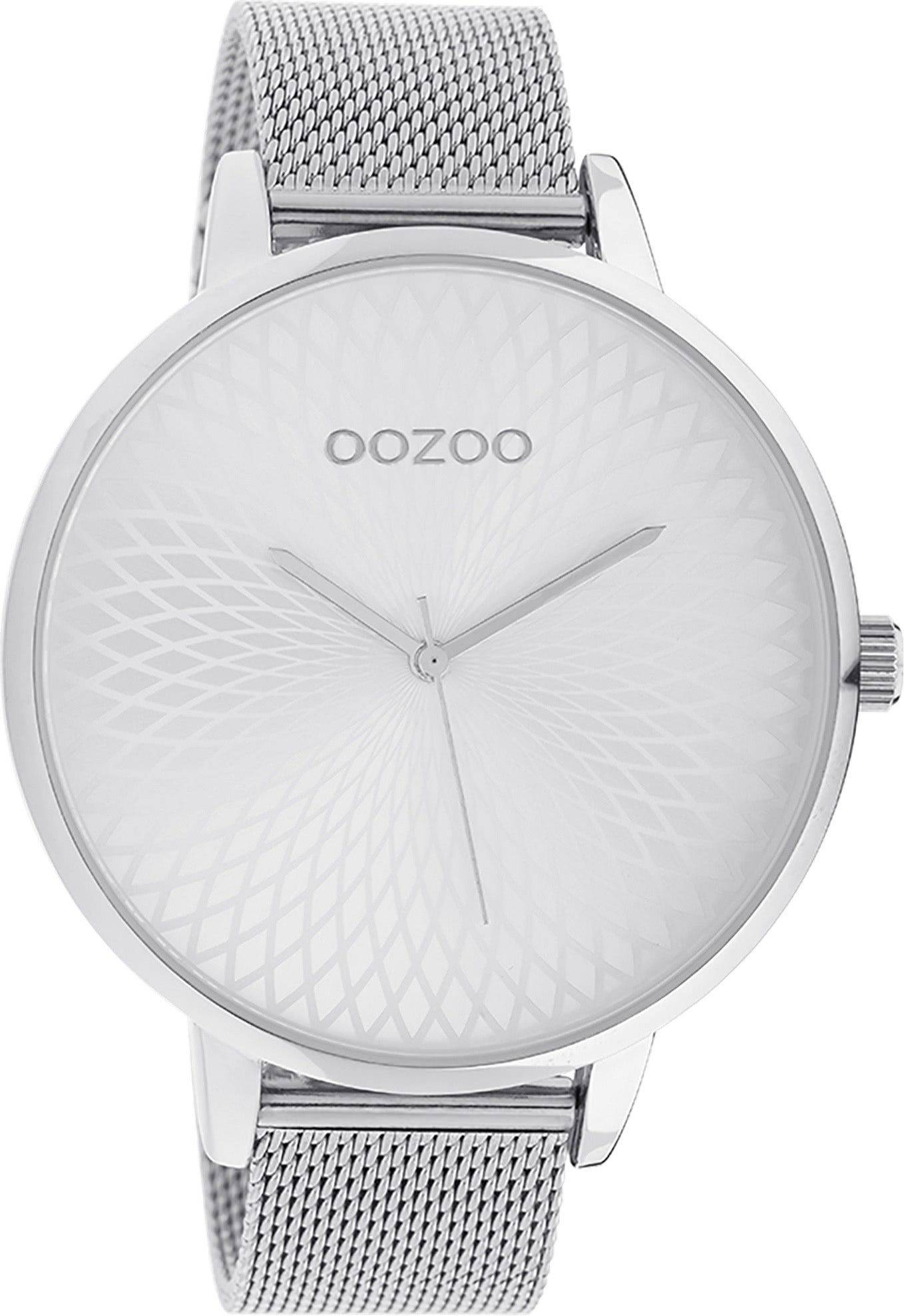 Die Fashion Uhr der Marke Oozoo hat ein schönes Armband aus Metall in silber mit Schiebeverschluss. Eine Uhr aus der Oozoo Timepieces Kollektion für Damen Herren in der Gehäusefarbe silber mit Quarzwerk. Die Analoguhr mit Mineralglas hat ein Zifferblatt in der Farbe silber. Die Form der Uhr ist rund und das Gehäuse ist extra groß ca. 48mm.