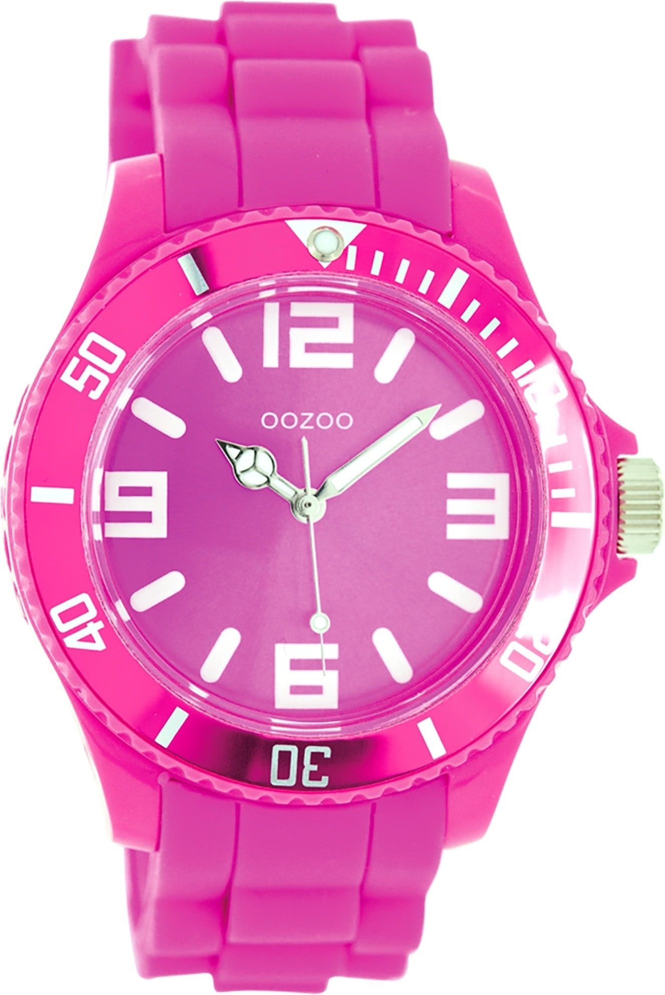 Die Fashion Uhr der Marke Oozoo hat ein schönes Armband aus Silikon in pink mit Dornschließe. Eine Uhr aus der Oozoo Vintage Series Kollektion für Damen Herren in der Gehäusefarbe pink mit Quarzwerk. Die Analoguhr mit Mineralglas hat ein Zifferblatt in der Farbe pink. Die Form der Uhr ist rund und das Gehäuse ist groß ca. 43mm.
