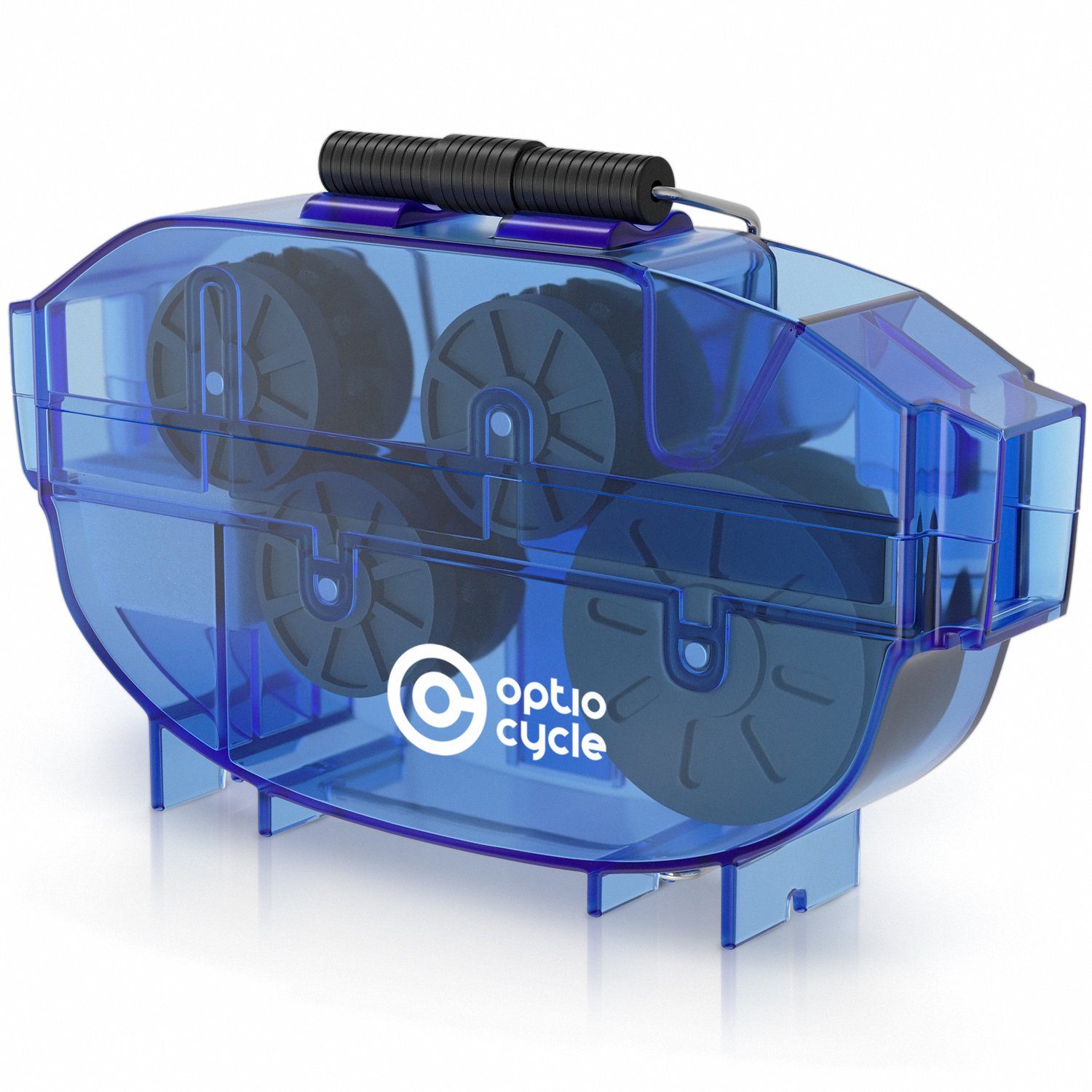 Der Fahrrad-Kettenreiniger von Optio Cycle ermöglicht eine schnelle und gründliche Reinigung der Fahrradkette – ganz ohne Ausbau. Dieses praktische Reinigungsgerät für Fahrradketten eignet sich perfekt für Rennräder, Mountainbikes und Citybikes.