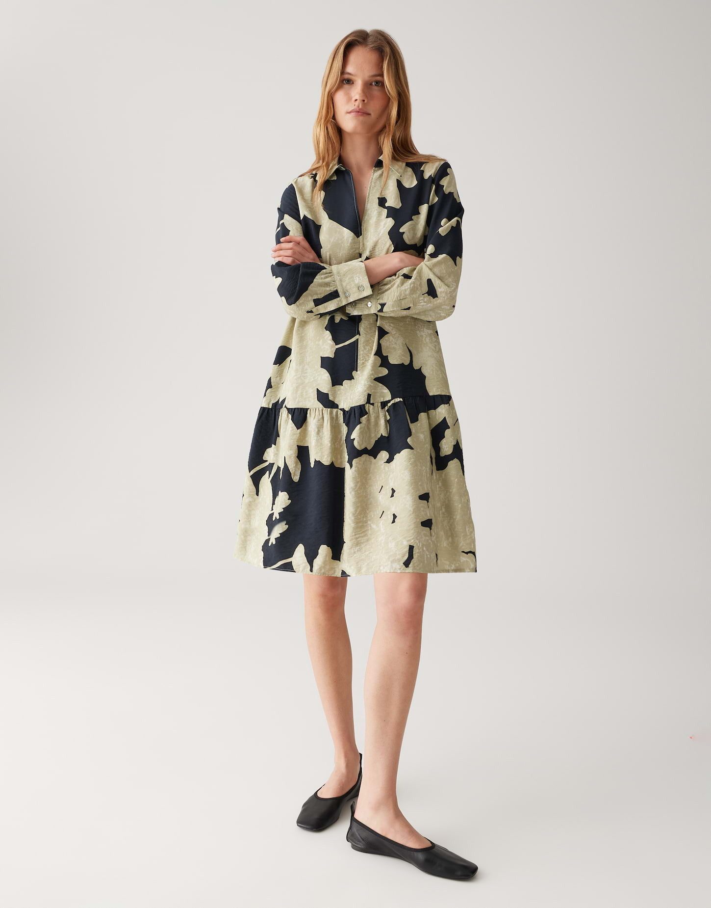 Besondere Merkmale | knielang, Saum mit Volantbesatz, Schlitz am Ärmelsaum |