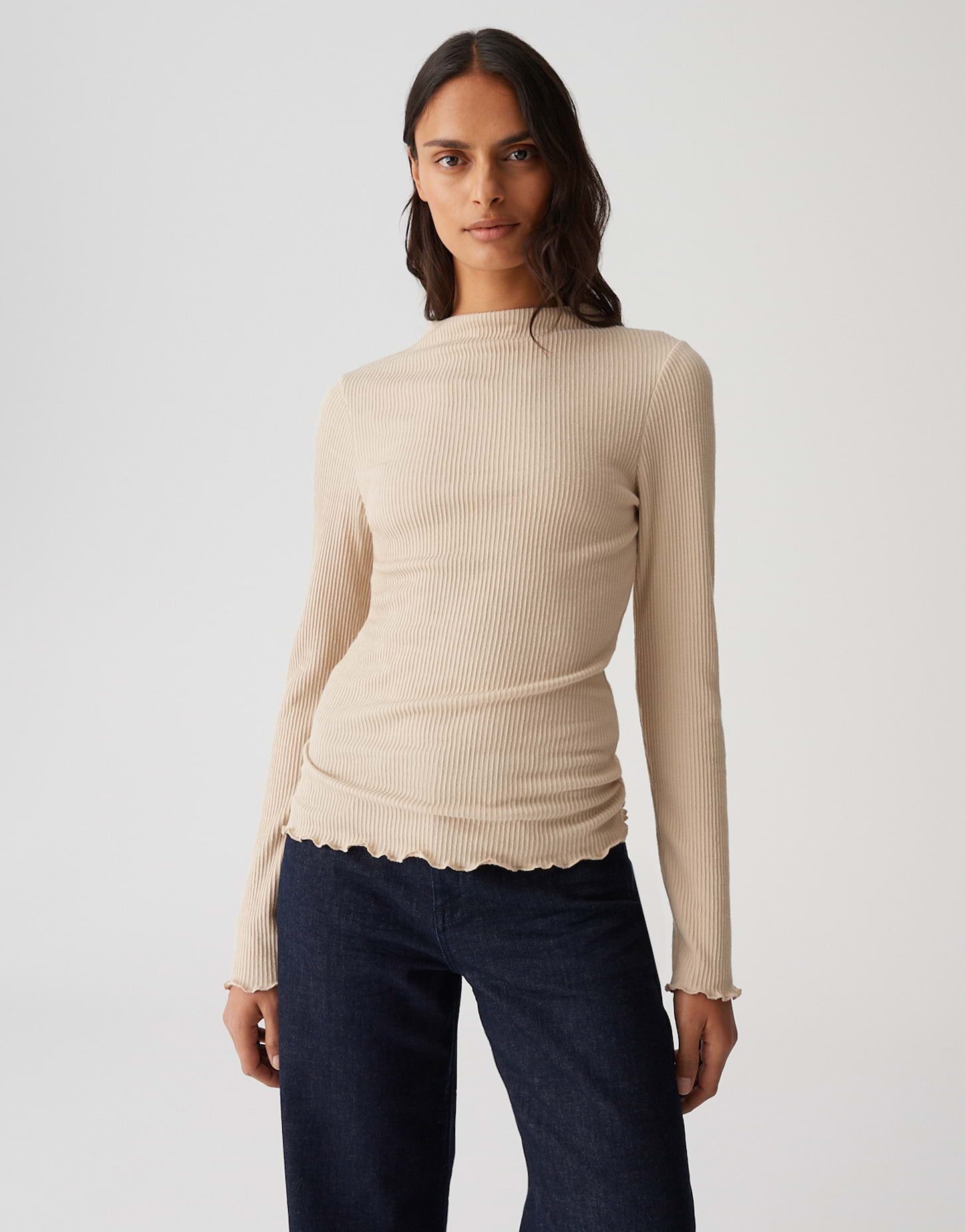 Besondere Merkmale | figurbetont geschnitten, elastischer Stoff, feine Rippstruktur |