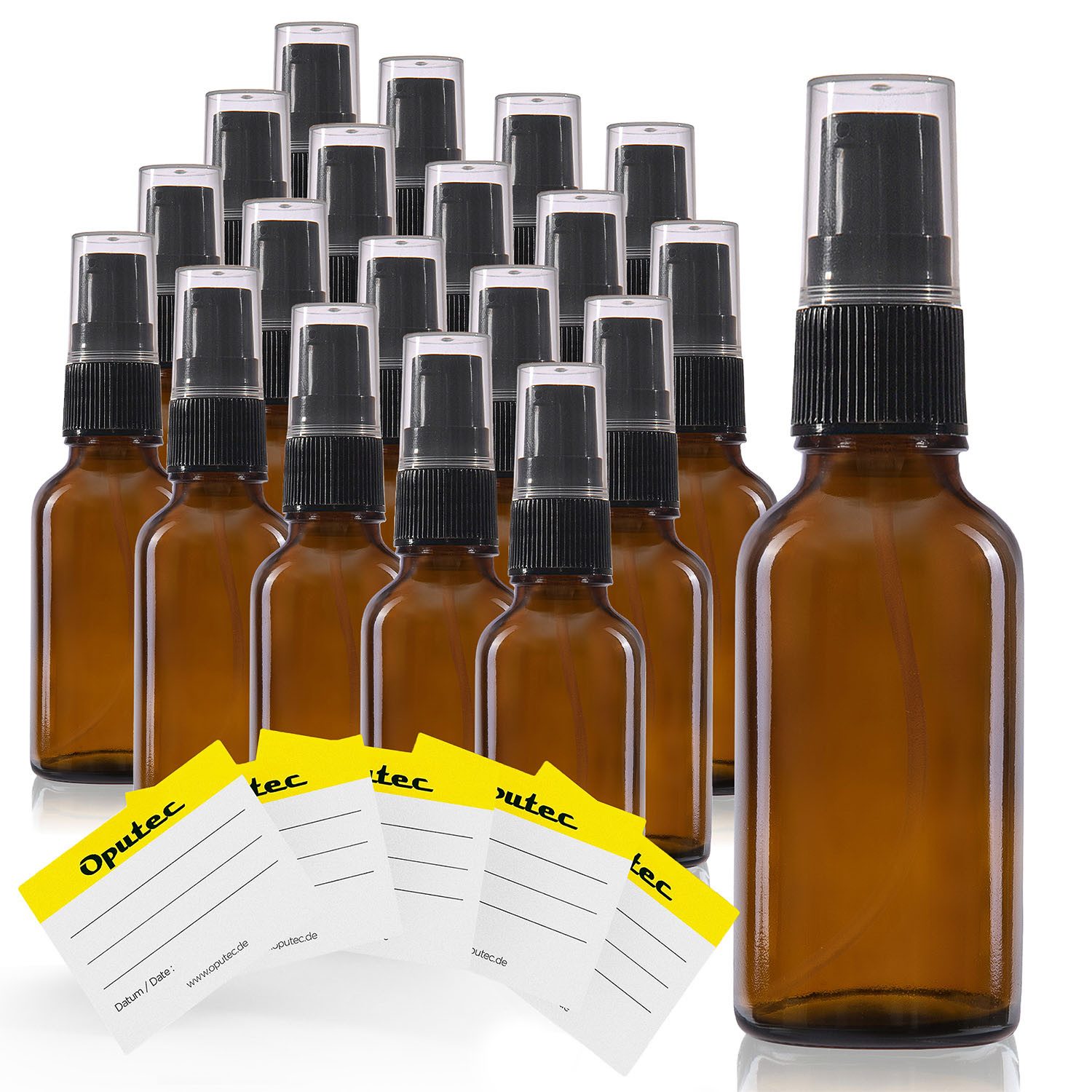 Lieferumfang | 20 x 30 ml Braunglas-Pumpspenderflasche, 20 x Beschriftungsetiketten |