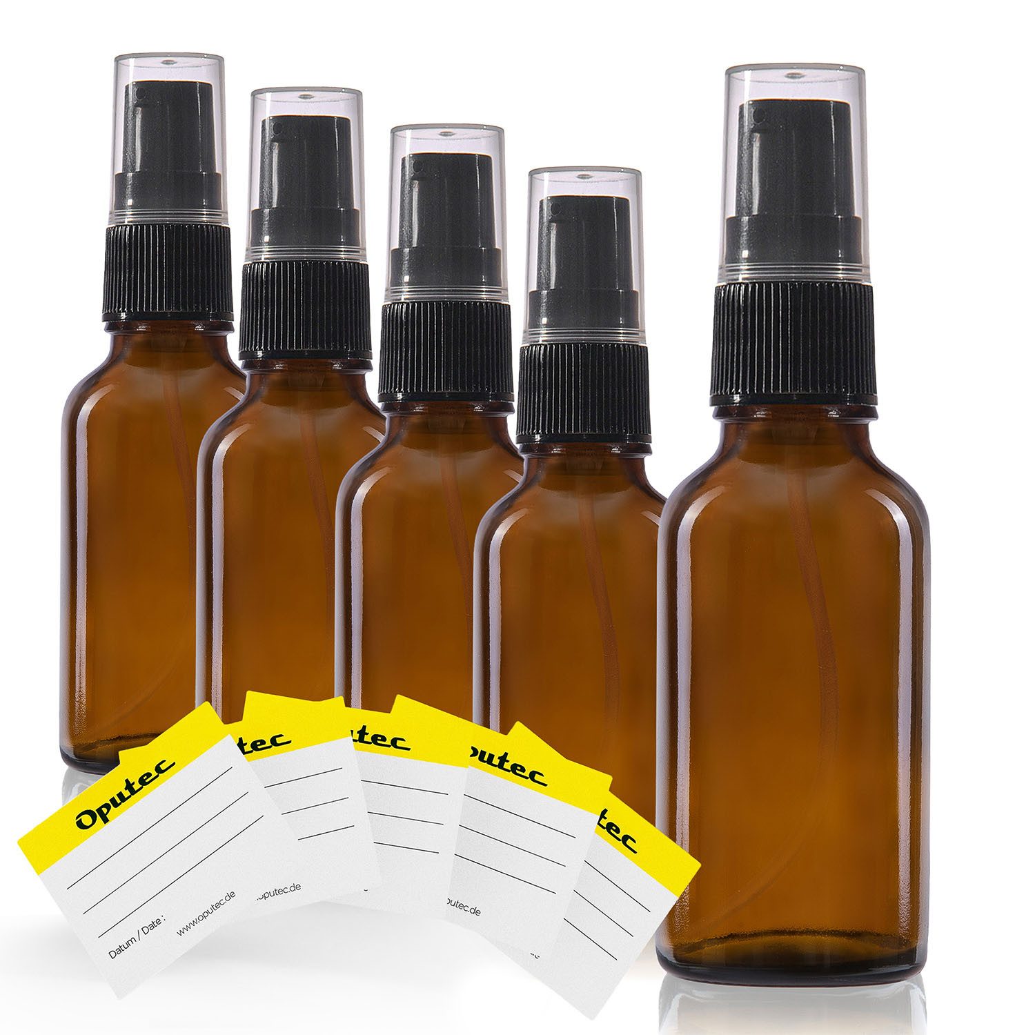 Lieferumfang | 5 x 30 ml Braunglas-Pumpspenderflasche, 5 x Beschriftungsetiketten |