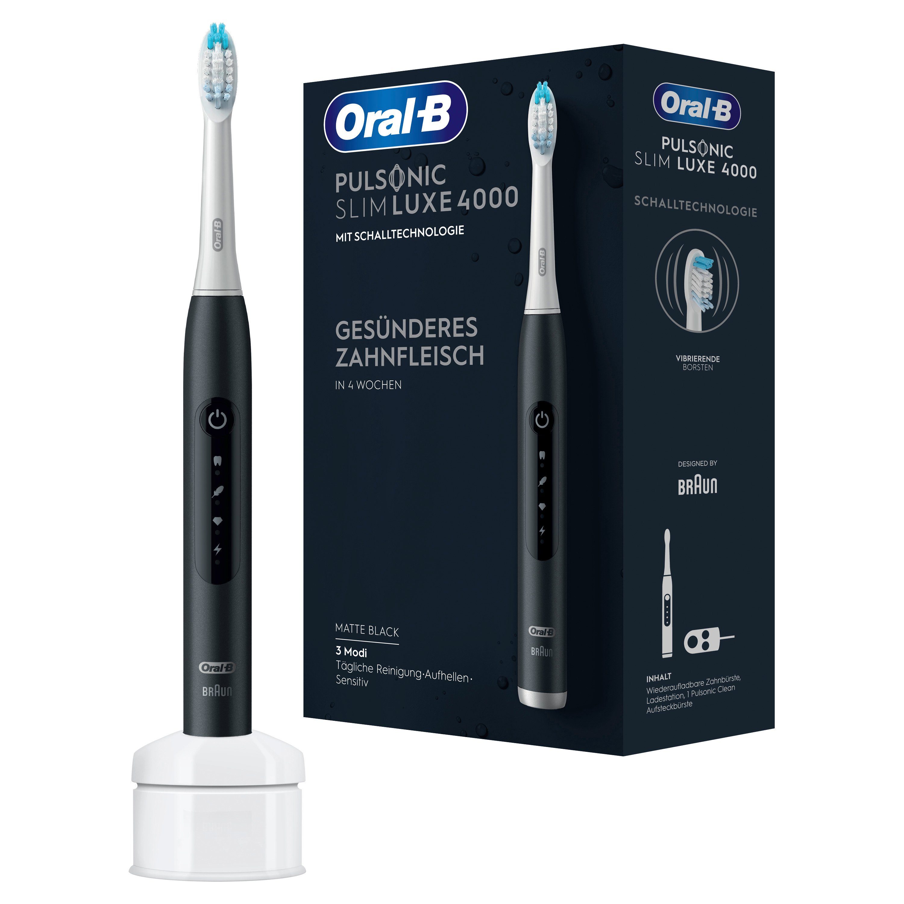 Lieferumfang | 1x Handstück, 1x Aufsteckbürste Pulsonic Clean, 1x Ladestation |