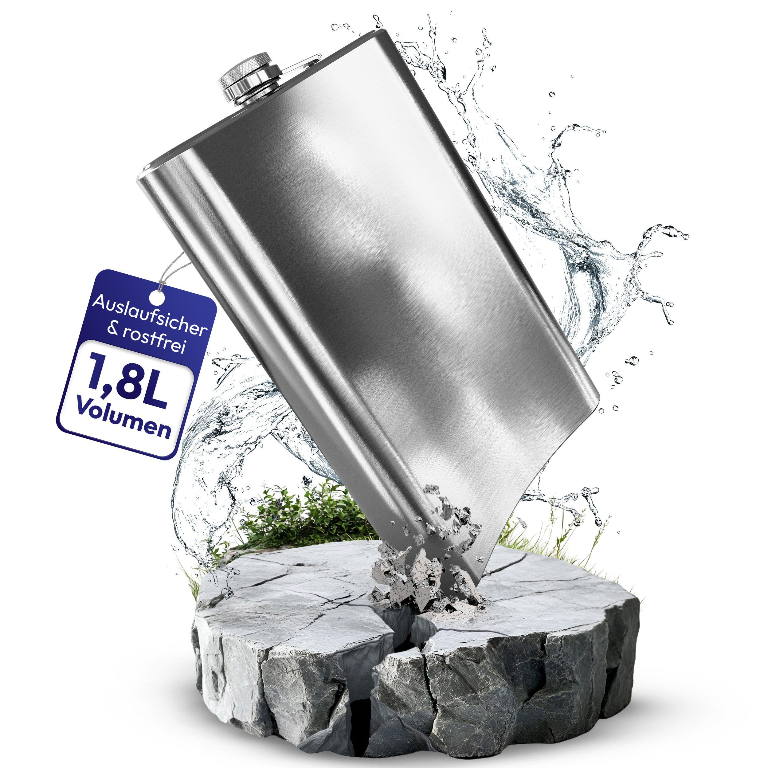 XXL Edelstahl Flachmann 1,8L - Die ultimative Trinkflasche für dein Abenteuer!