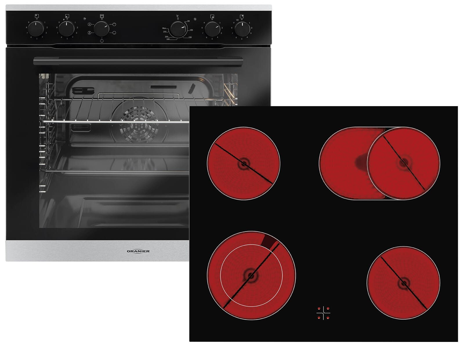 Set bestehend aus | Oranier EBH 991330 Einbauherd Schwarz, Oranier KFC 986615 Glaskeramikkochfeld, 1 Grillrost, verchromt, 1 Backblech, emailliert, |