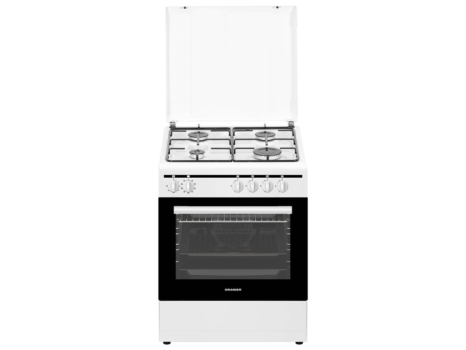 Set bestehend aus | Oranier STK557 Gas Kombi Standherd Weiß, 1 Grillrost, verchromt, 1 Fettpfanne, emailliert, 1 Backblech, emailliert, 1 Flüssiggasdüsen-Set, |