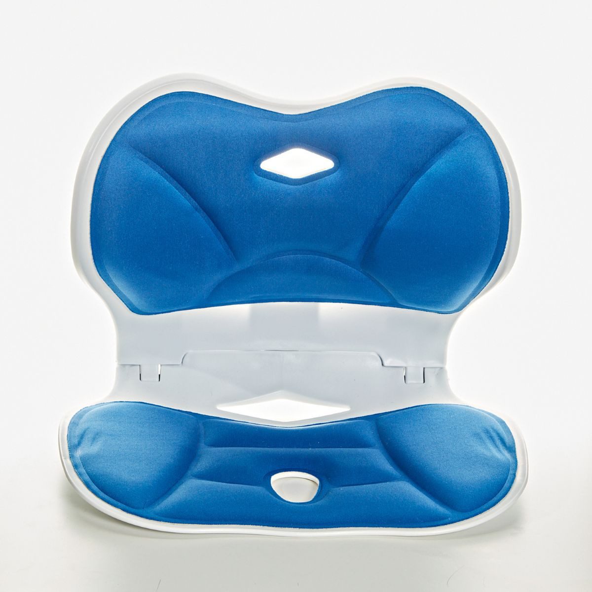 Die spezielle Sitzschale lässt sich bequem auf normalen Stühlen platzieren und unterstützt eine gesündere Sitzhaltung, indem sie sanften Gegendruck ausübt.