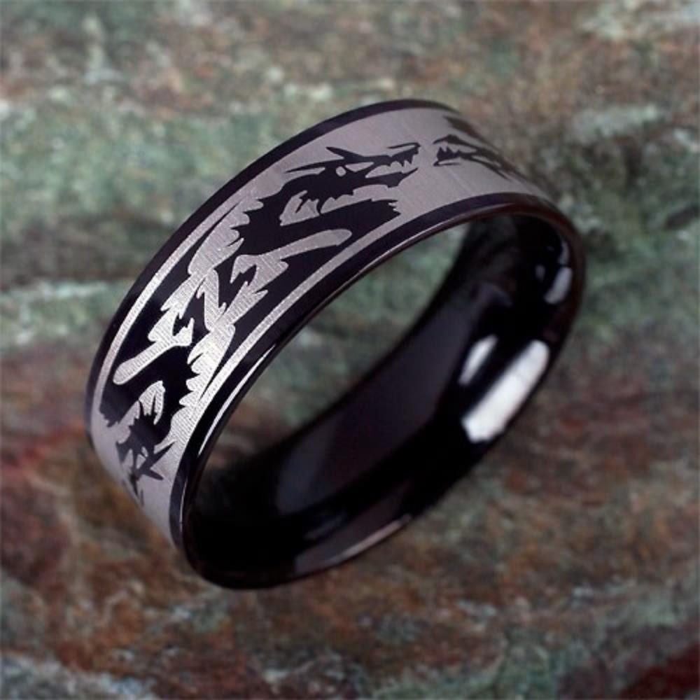Toller Asia Dragon Style. Moderner zweifarbiger Edelstahl Ring mit Drachen Tribal.