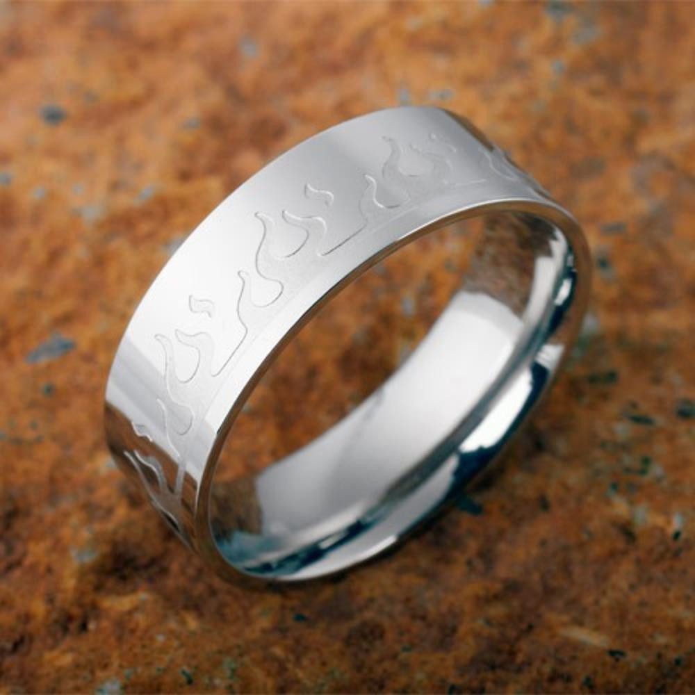 Rockabilly Style. Moderner Edelstahl Ring mit Flammen Tribal.