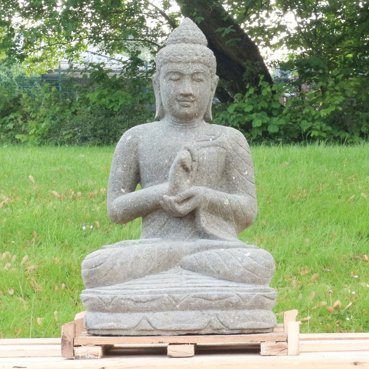 Diese Figur ist wetterfest und frostbeständig und eignet sich ideal als ausdrucksstarker Blickfang für den Garten, Eingangsbereich oder Meditationsraum.