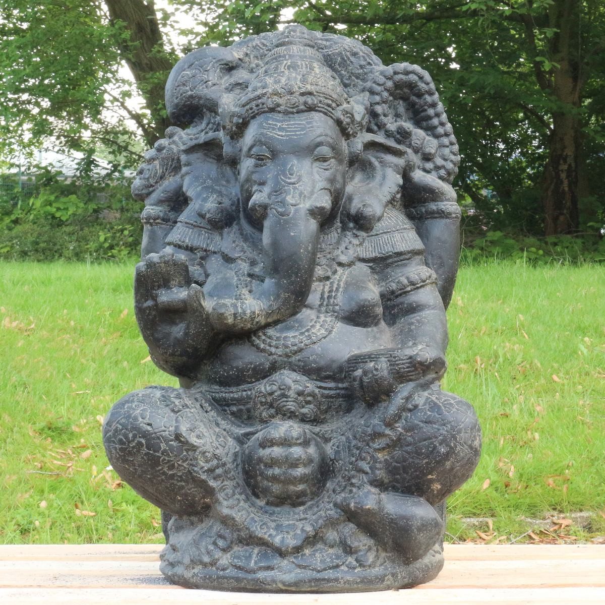 Diese beeindruckende Ganesha-Figur wird in Indonesien aus natürlichem Lavastein gefertigt. Die Figur ist innen hohl und misst ca. 80 cm in der Höhe, 50 cm in der Breite und 38 cm in der Tiefe. Der frostfeste Lavasteinguss macht die Skulptur ideal für den Einsatz im Innen- wie Außenbereich. Die aufwändige Handarbeit und Nachbearbeitung verleihen jeder Figur eine einzigartige Ausstrahlung.