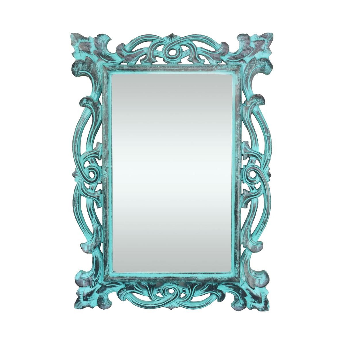 Wunderschöner Wandspiegel mit schwarz / türkisen Holzrahmen ca. 70 x 50 cm