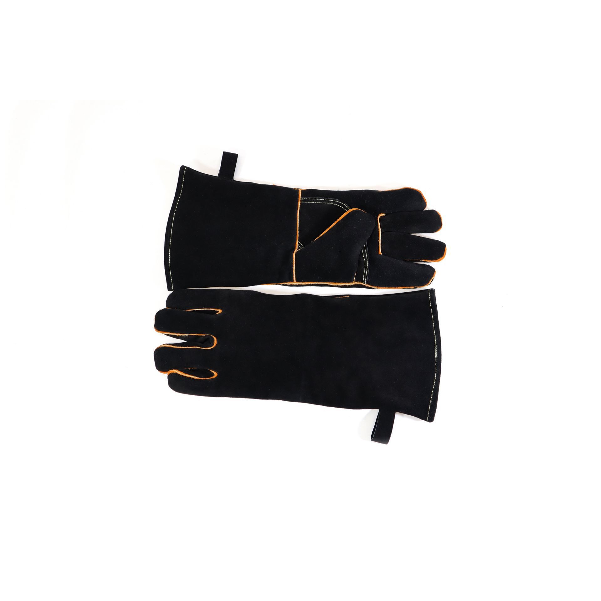 Strapazierfähige Handschuhe aus Rauleder. Dank des langen Schaftes werden auch die Unterarme perfekt vor Funkenflug und Flammen geschützt. Das Innenfutter aus Baumwolle sorgt für ein angenehmes Tragegefühl. Die Nähte sowie das Futter im Handbereich bestehen aus hitzebeständigen Aramid-Fasern. Die Handschuhe passen dank der Universalgröße für nahezu jede Hand. An den eingenähten Lederschlaufen kann das Handschuhpaar bequem aufgehängt werden. Perfekt für die Verwendung als Grill- und Ofenhandschuh geeignet.