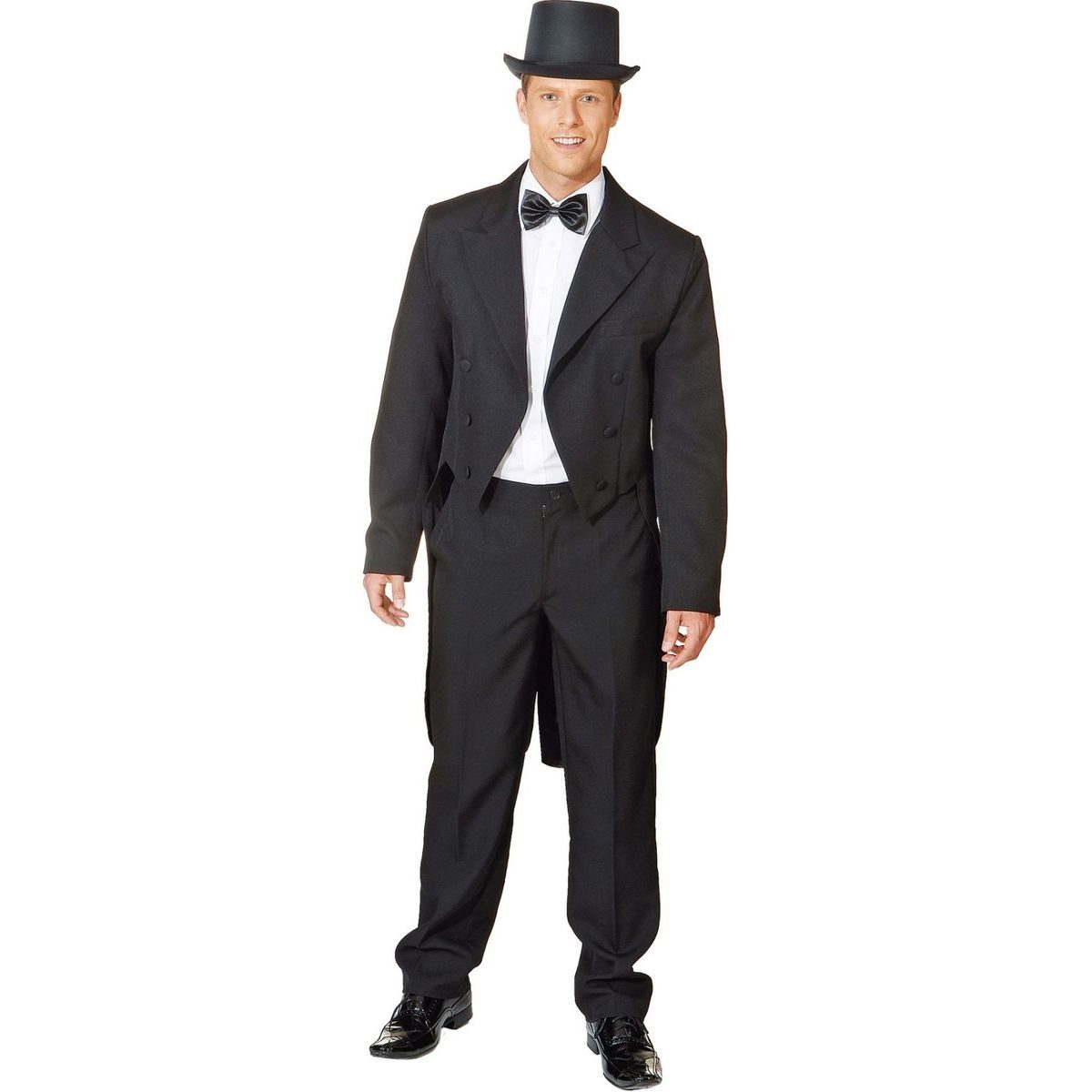 Der Herren Frack ist ein unverzichtbares Outfit für viele Anlässe wie Bühne, Revue, Theater, Rollenspiel, 20er Jahre Mottoparty und natürlich auch zu Fasching oder Karneval. Ein hochwertiger aber preisgünstiger Herrenfrack mit Innenfutter und bezogenen Knöpfen. Der schwarze Frack wird offen getragen, ohne vorderen Verschluss.