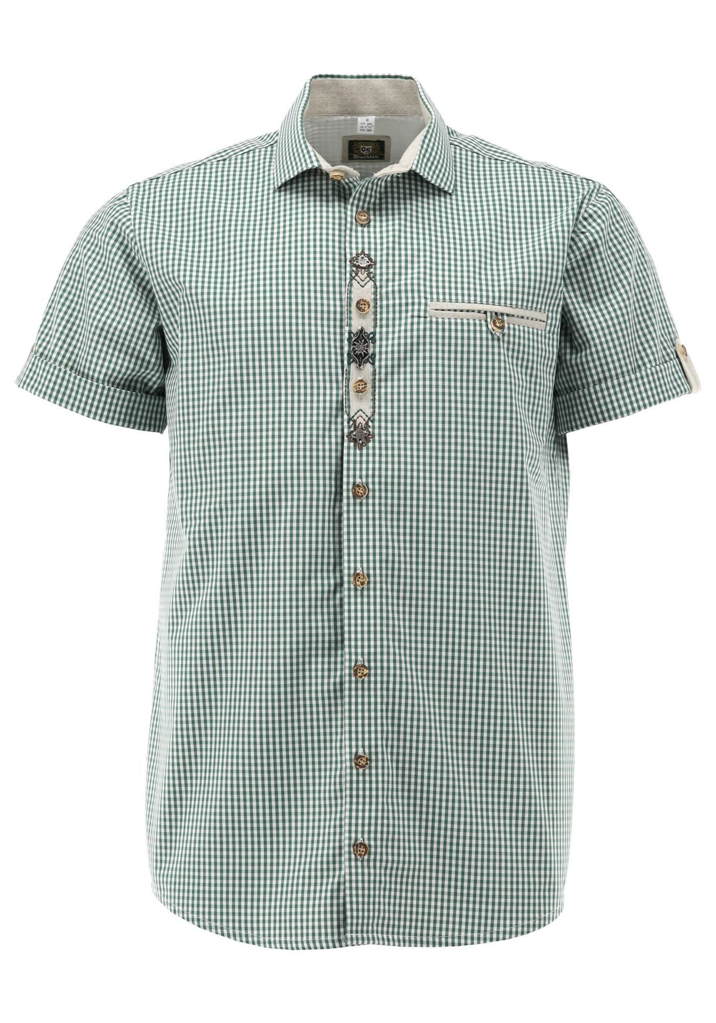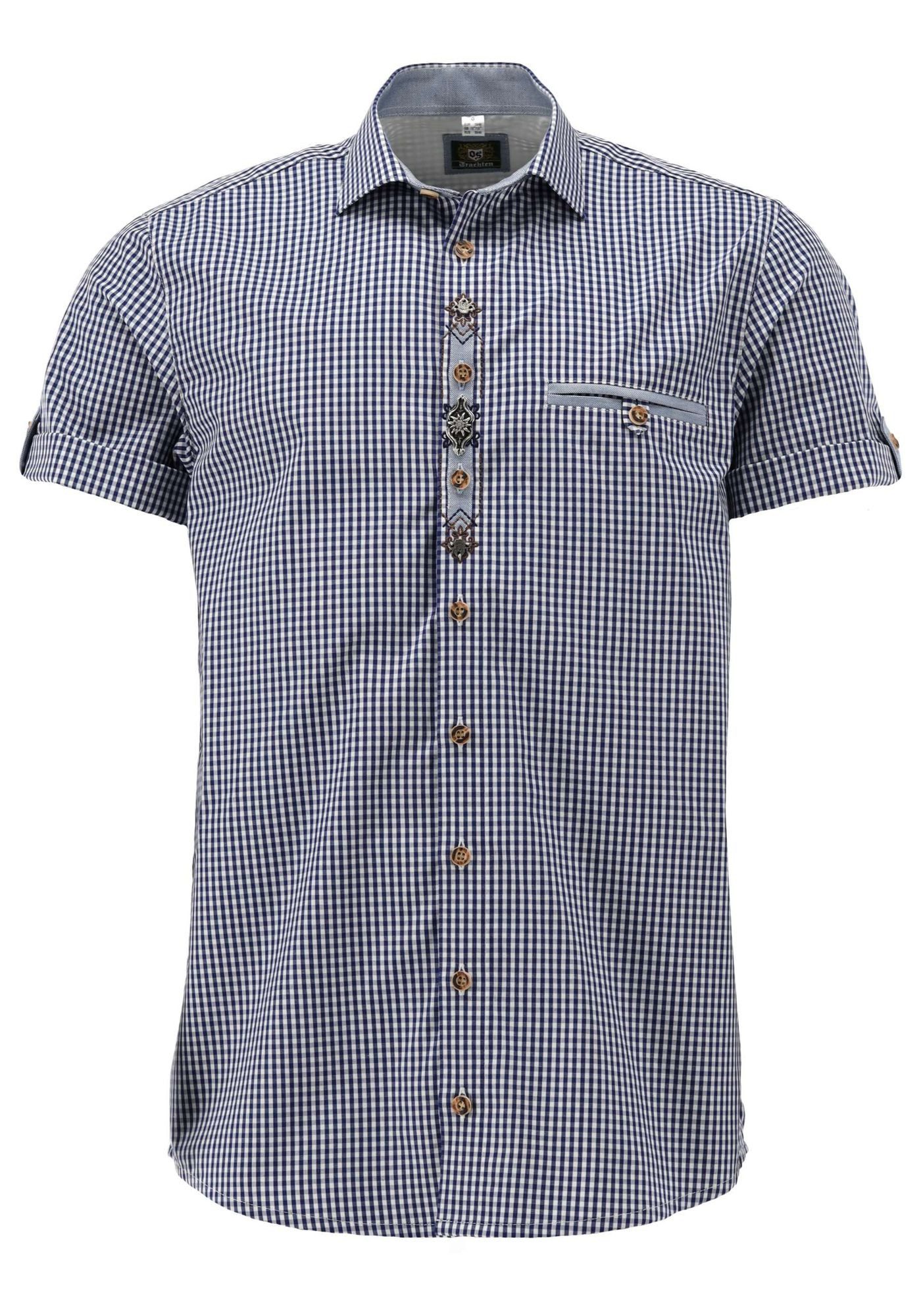 OS Trachten Kurzarmhemd Scuwe Regular Fit, Haifischkragen, Krempellasche mit Knopf, Paspeltasche