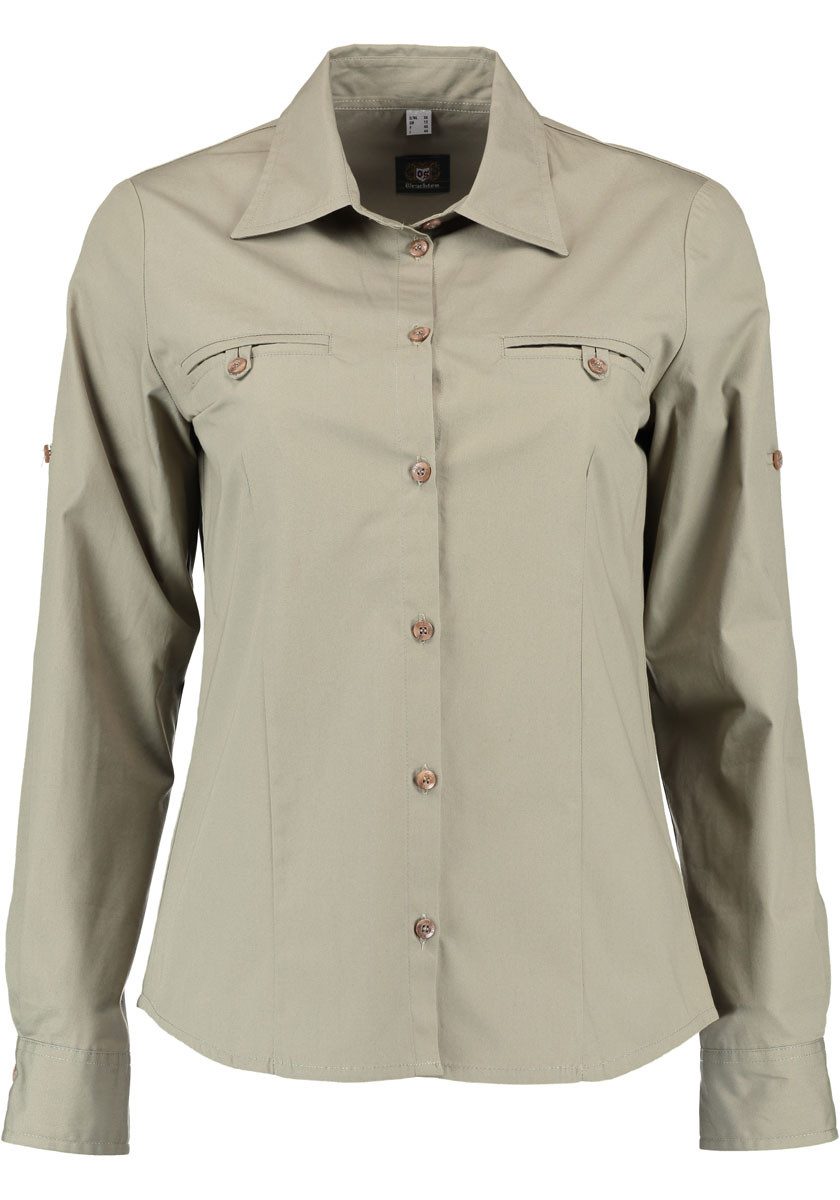 Besondere Merkmale | Damen Langarmbluse mit 2 Paspeltaschen mit Lasche |